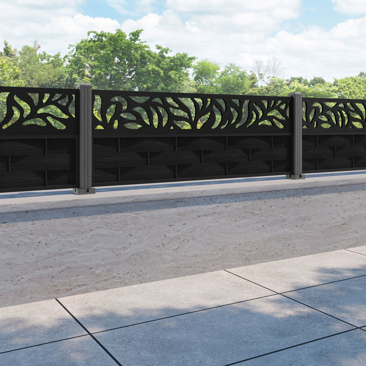 Ripple Plume Fence Panel Black - with our aluminium posts