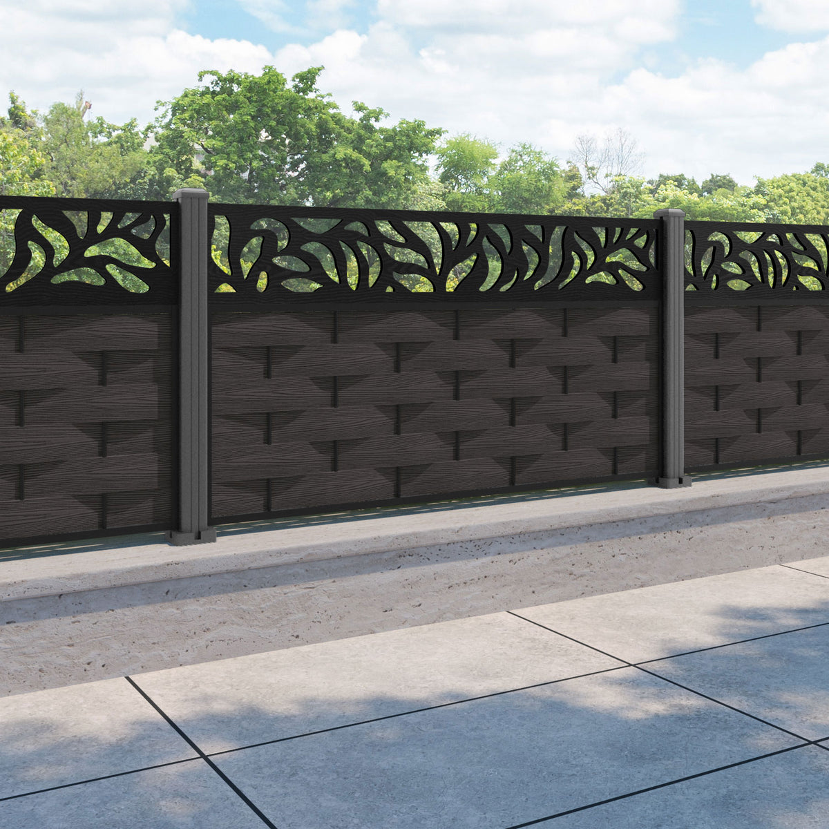 Ripple Plume Fence Panel Dark Oak - with our aluminium posts