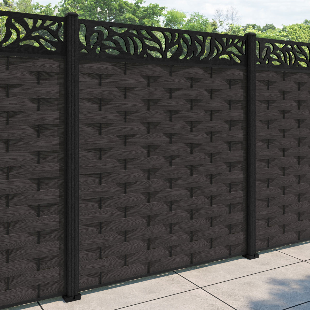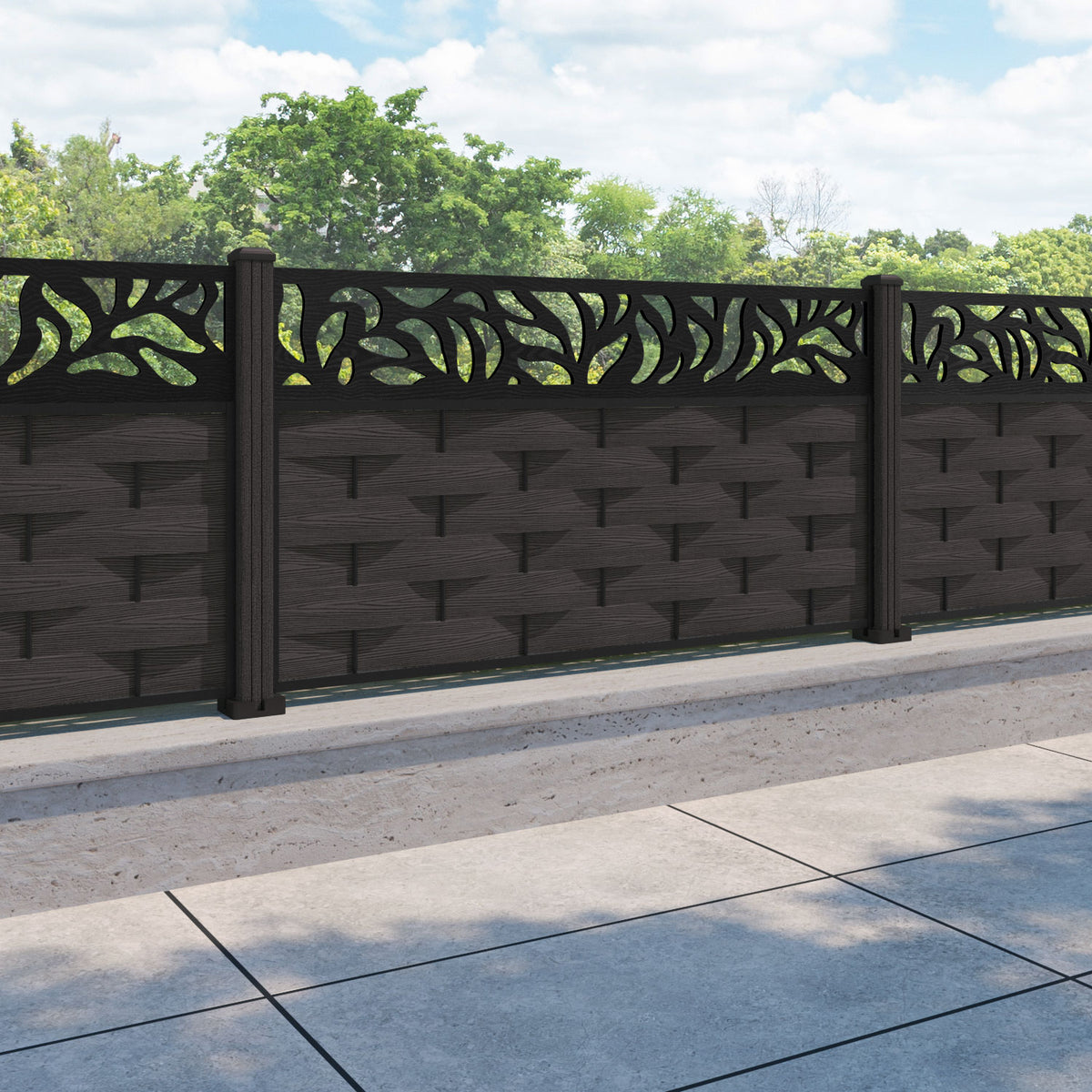 Ripple Plume Fence Panel Dark Oak - with our composite posts