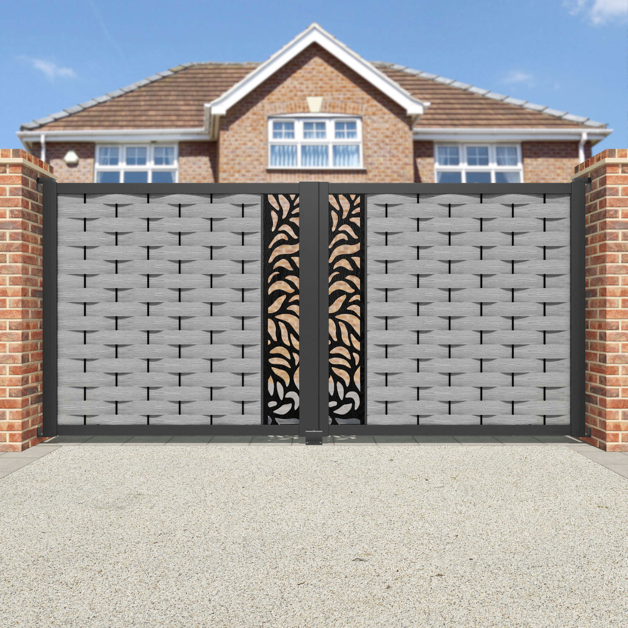 Ripple Plume Straight Top Driveway Gate Light Grey - Middle Screen