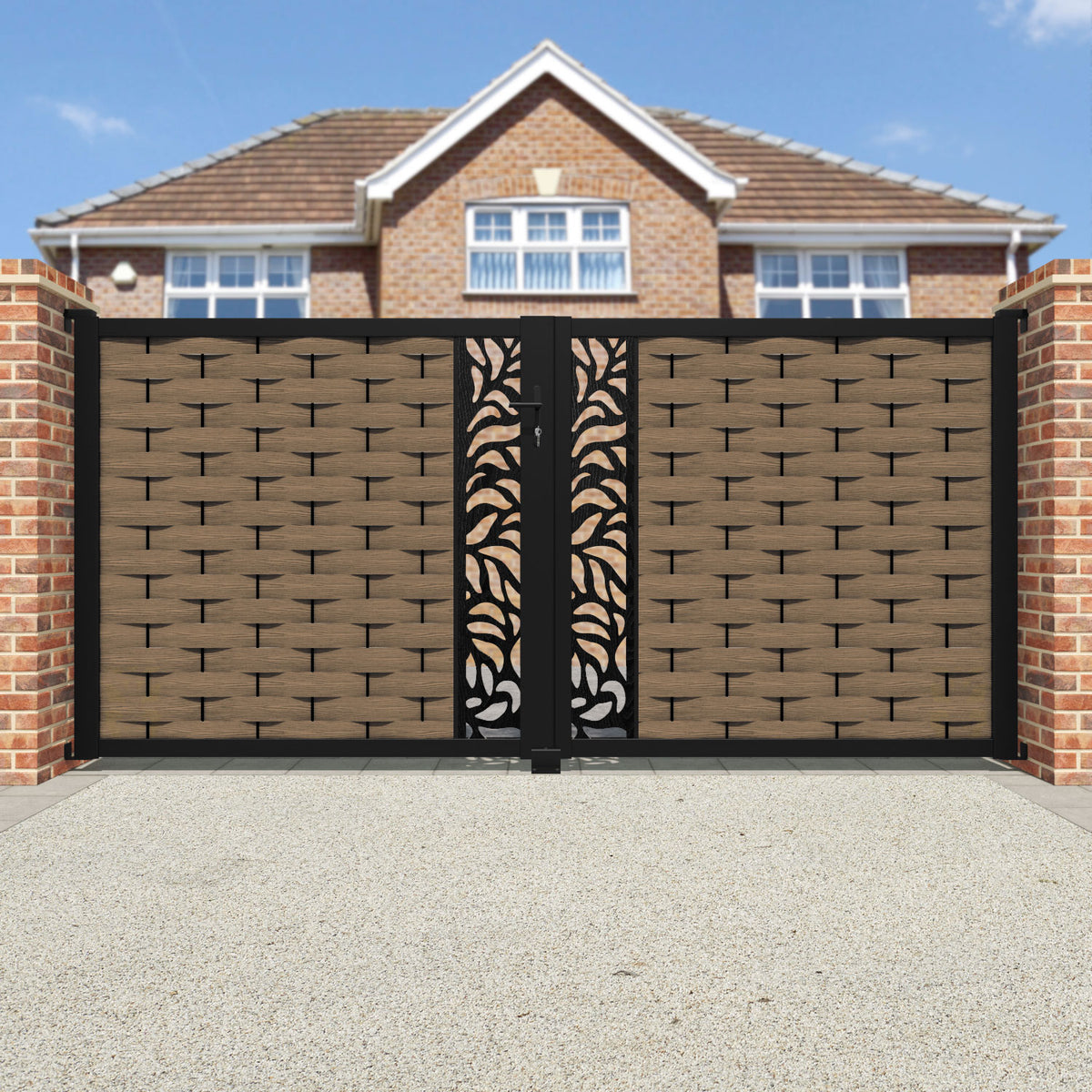 Ripple Plume Straight Top Driveway Gate Teak - Middle Screen