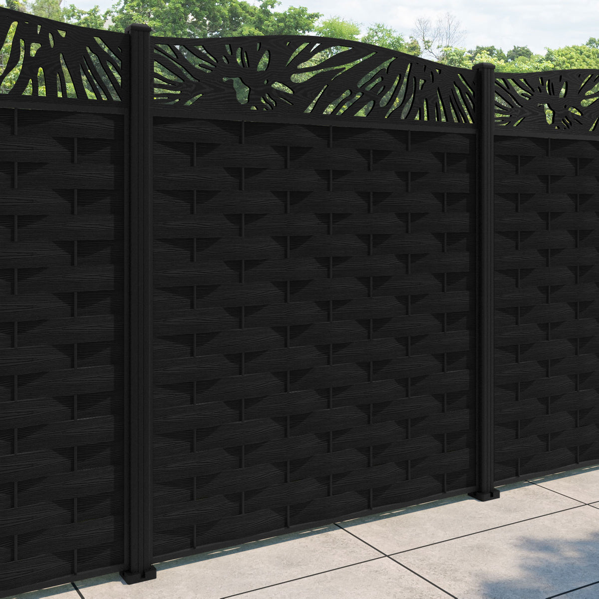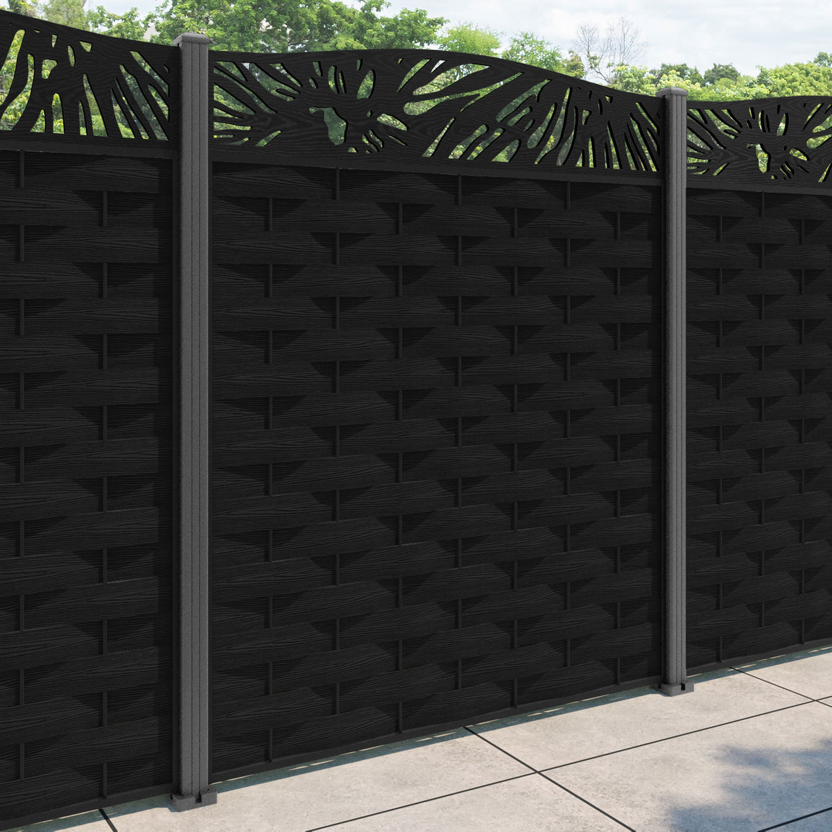 Ripple Poppy Curved Top Fence Panel Black - with our aluminium posts