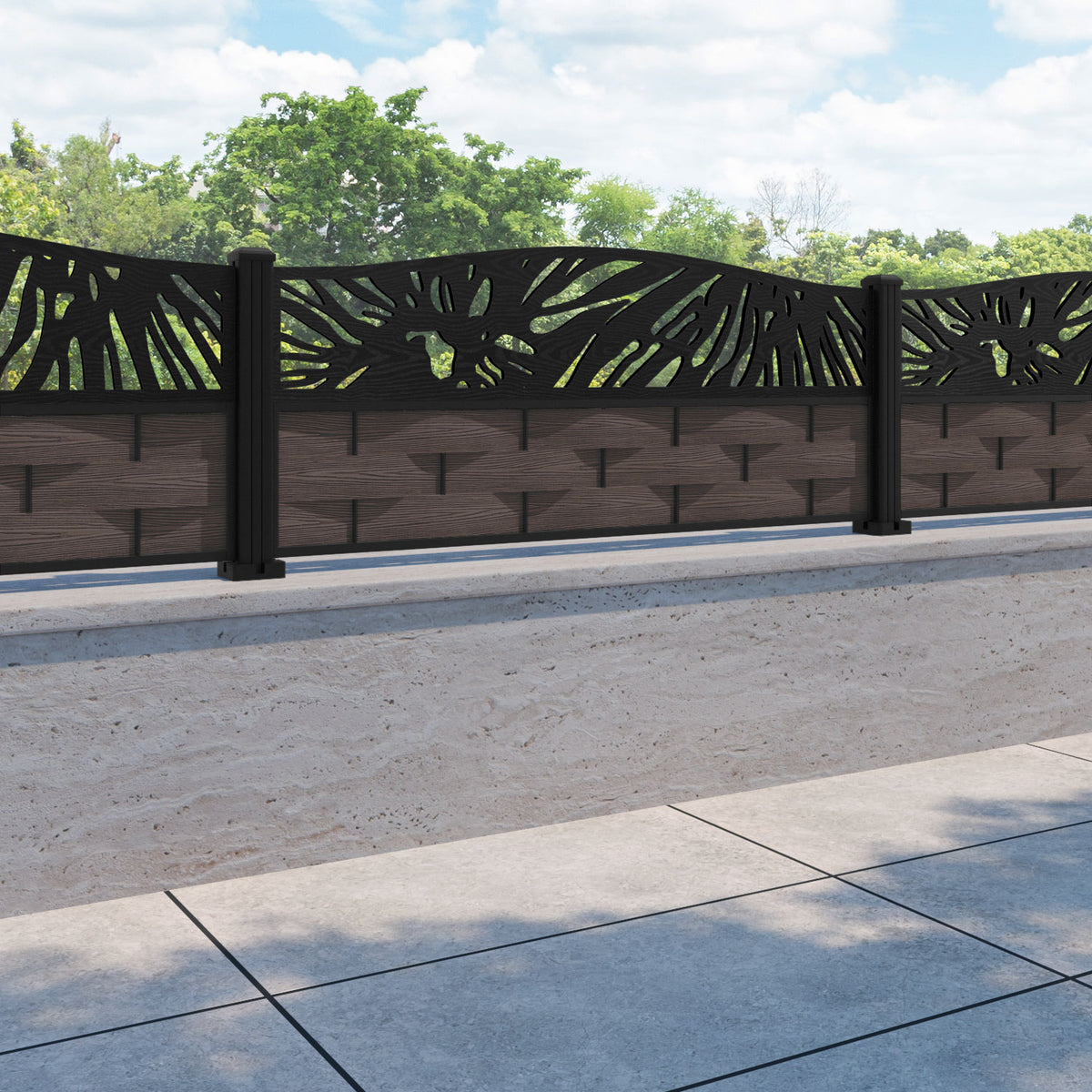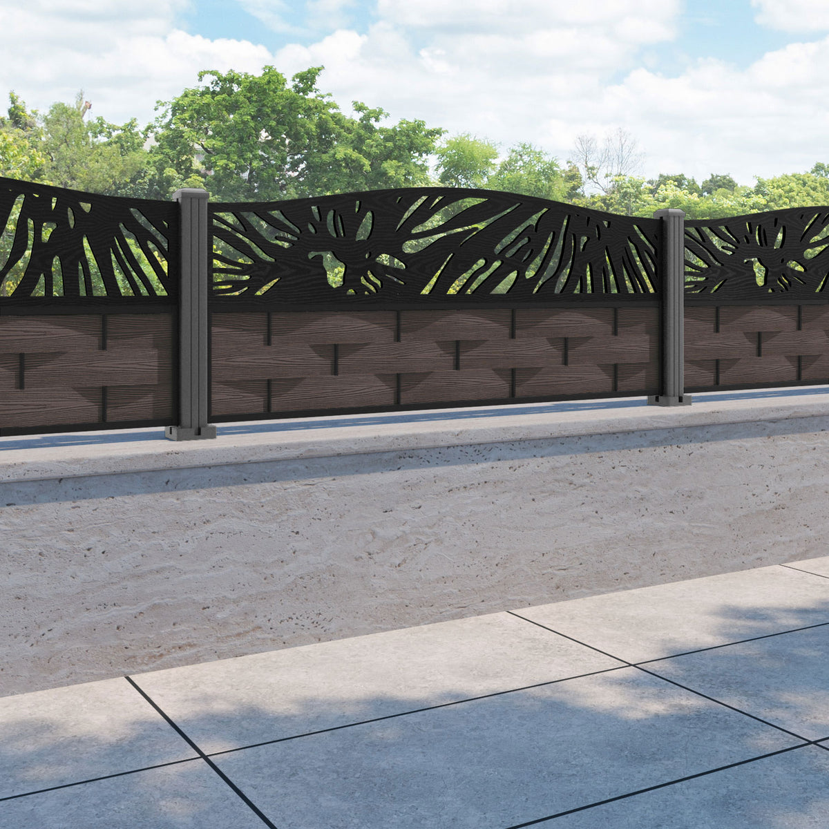 Ripple Poppy Curved Top Fence Panel Mid Brown - with our aluminium posts