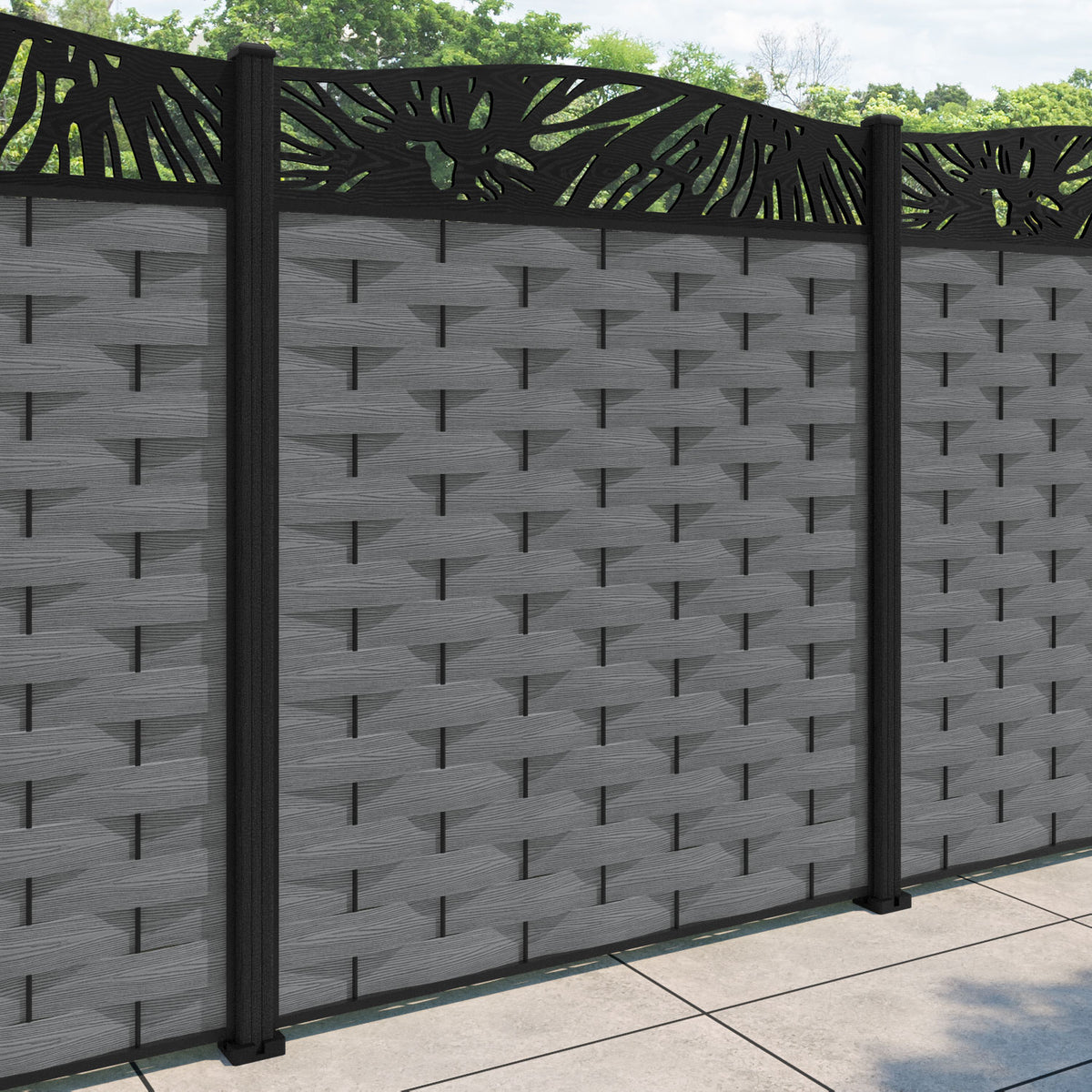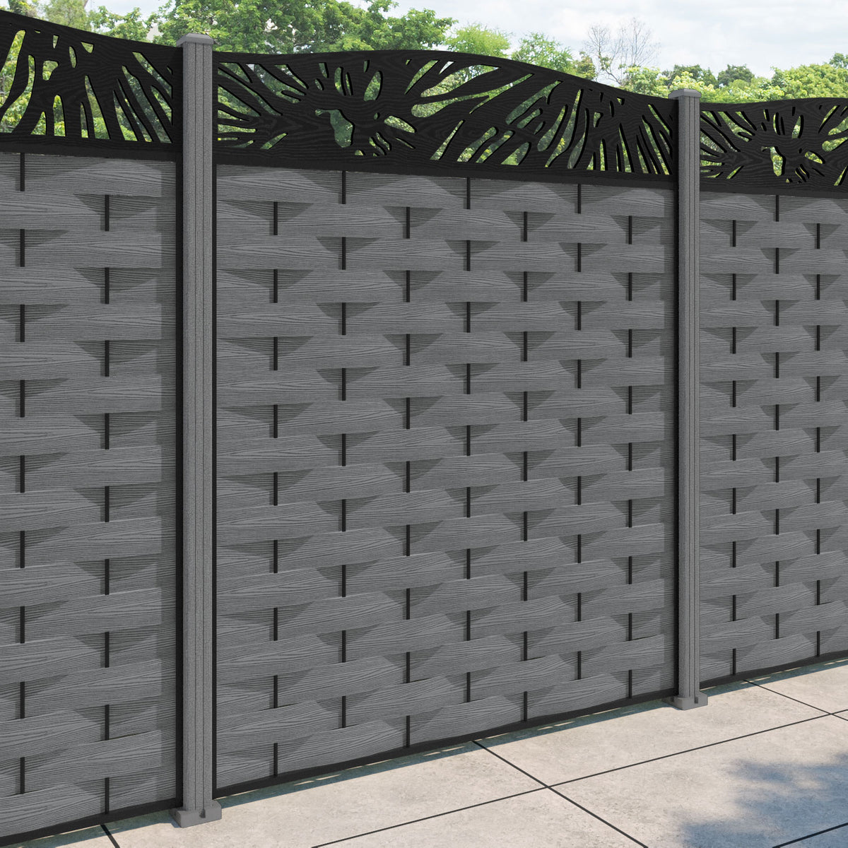 Ripple Poppy Curved Top Fence Panel Mid Grey - with our composite posts