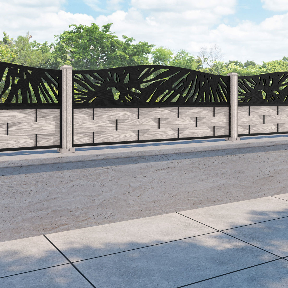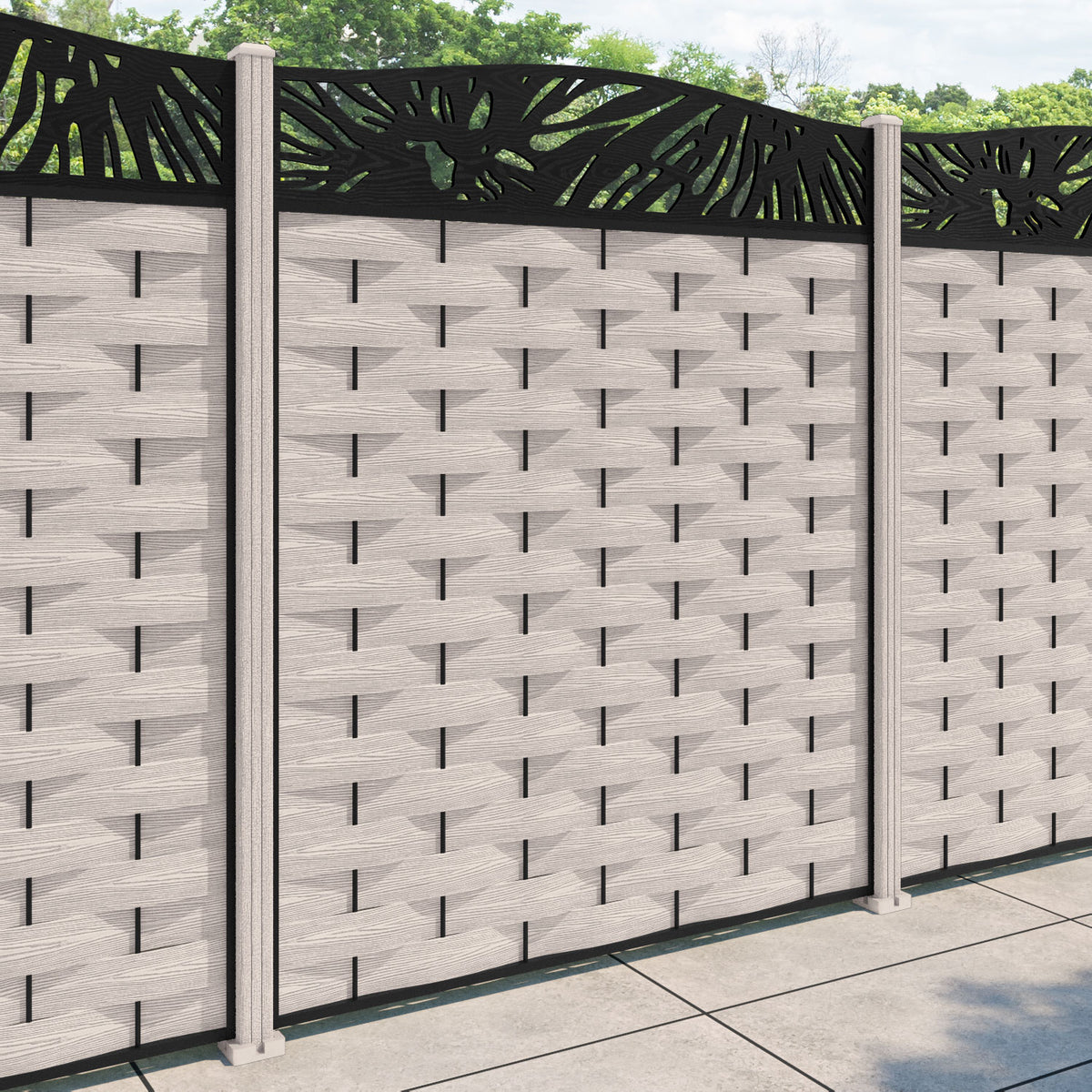 Ripple Poppy Curved Top Fence Panel Mid Stone - with our composite posts