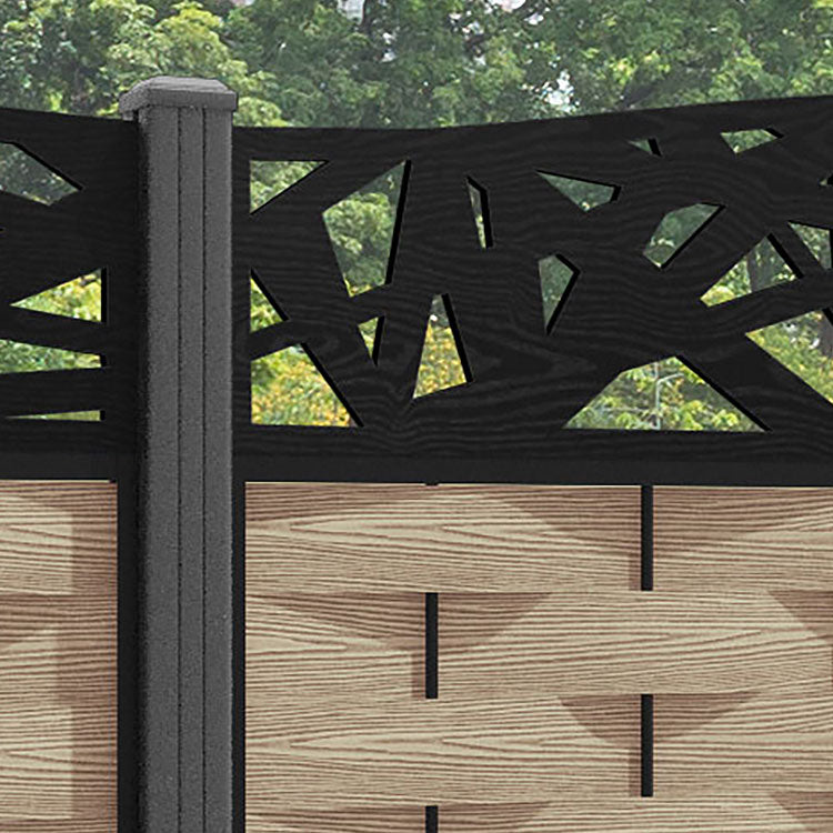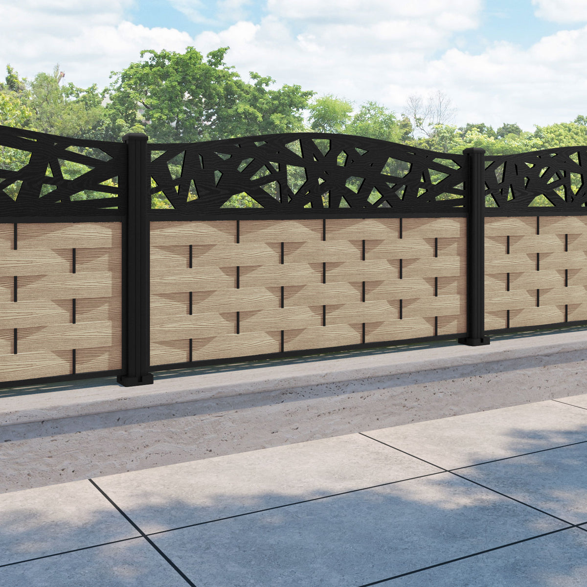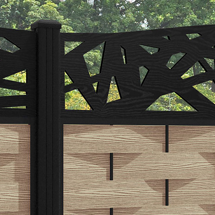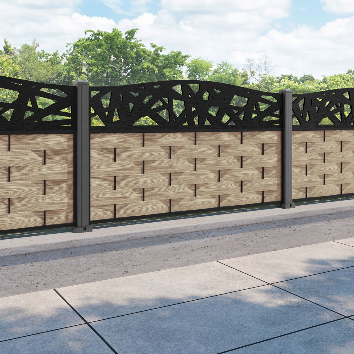 Ripple Prism Curved Top Fence Panel Light Oak - with our aluminium posts
