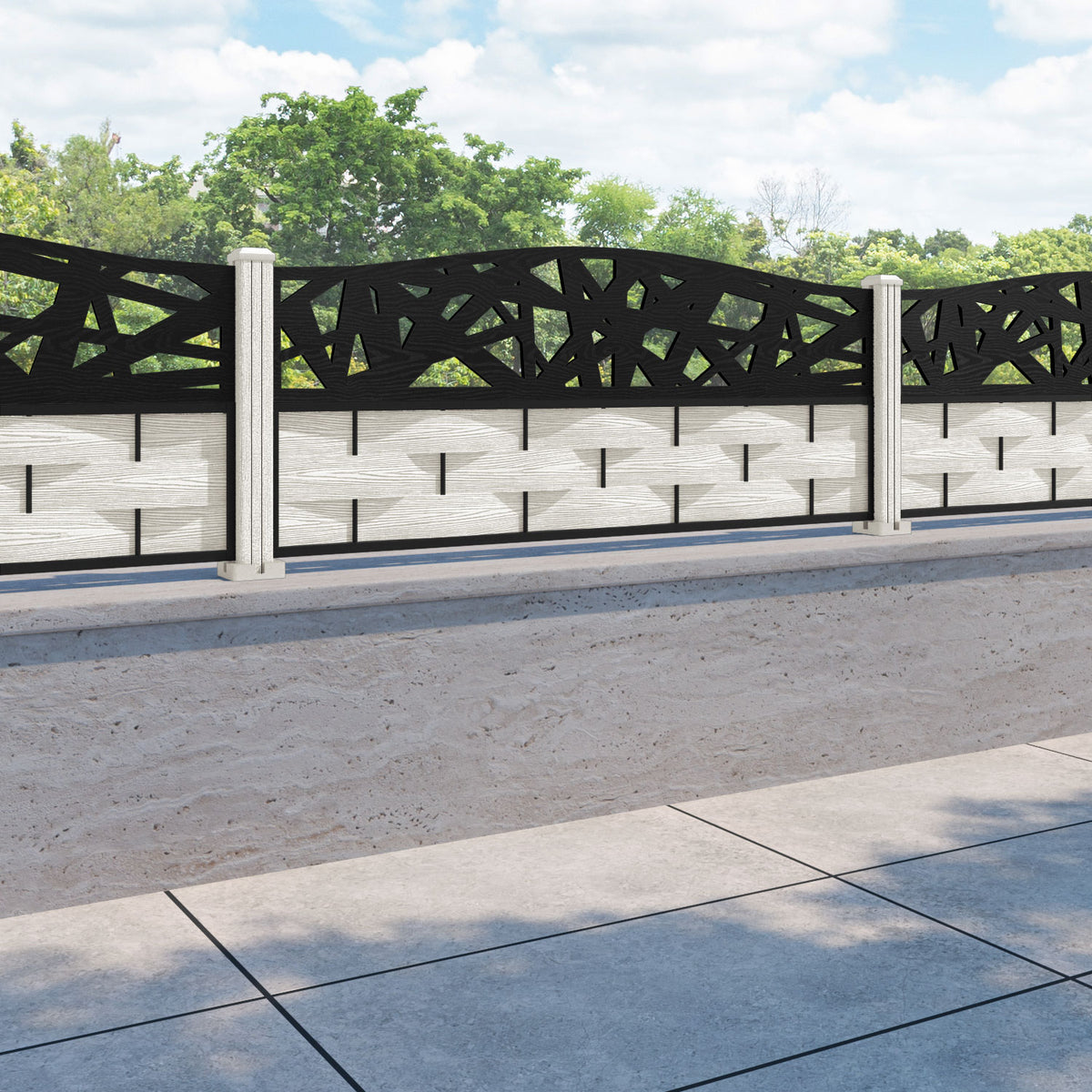 Ripple Prism Curved Top Fence Panel Light Stone - with our composite posts
