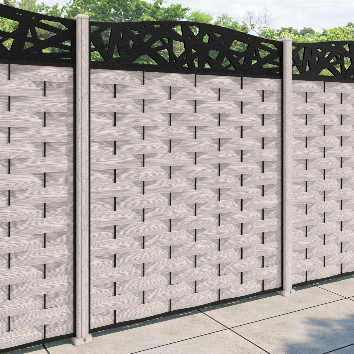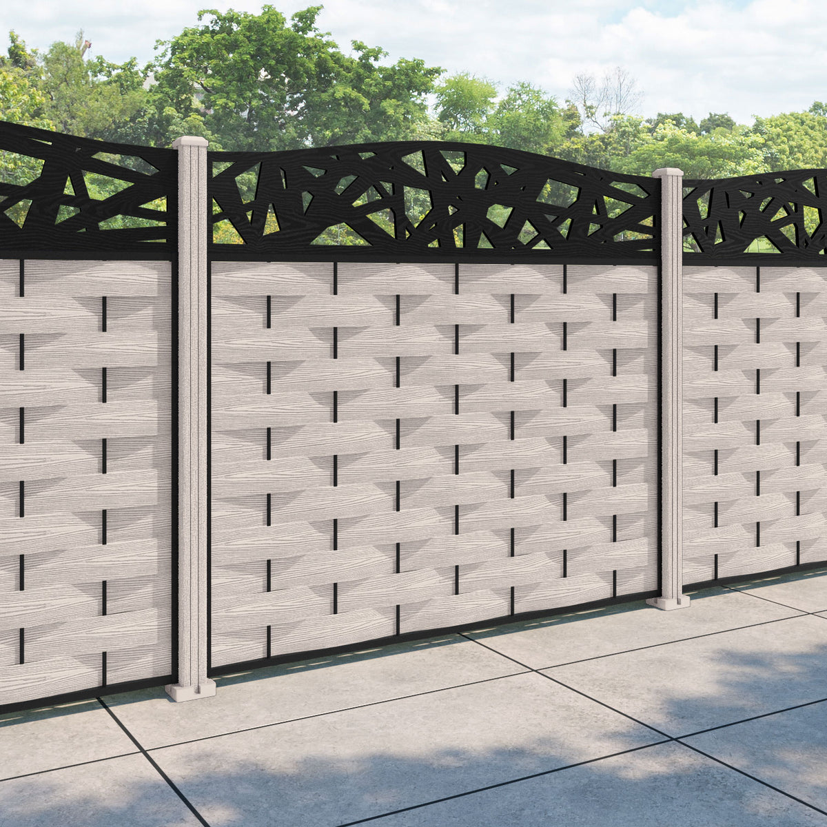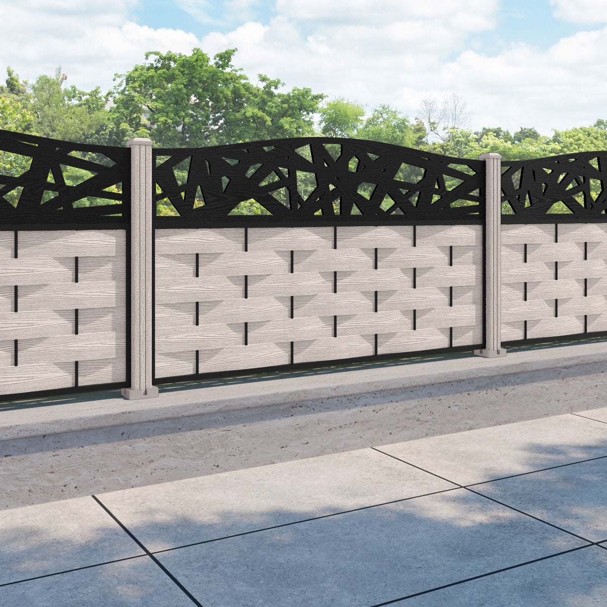 Ripple Prism Curved Top Fence Panel Mid Stone - with our composite posts