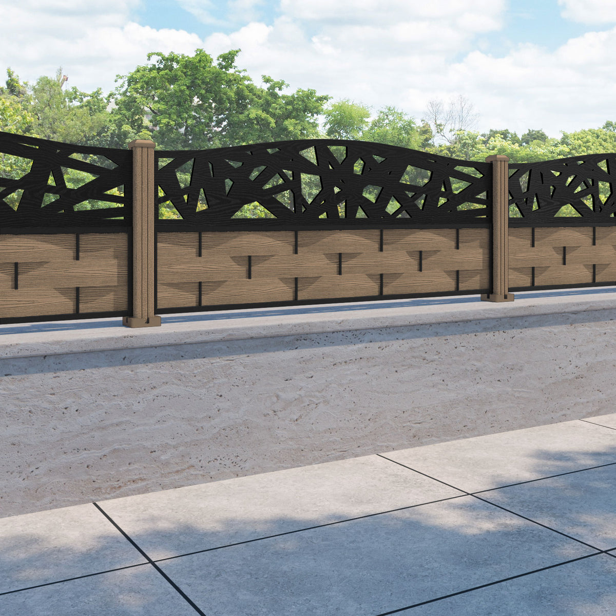 Ripple Prism Curved Top Fence Panel Teak - with our composite posts