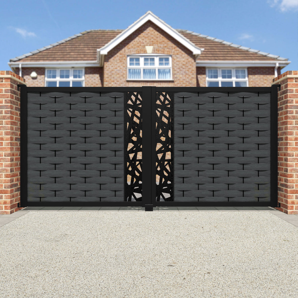 Ripple Prism Straight Top Driveway Gate Dark Grey - Middle Screen