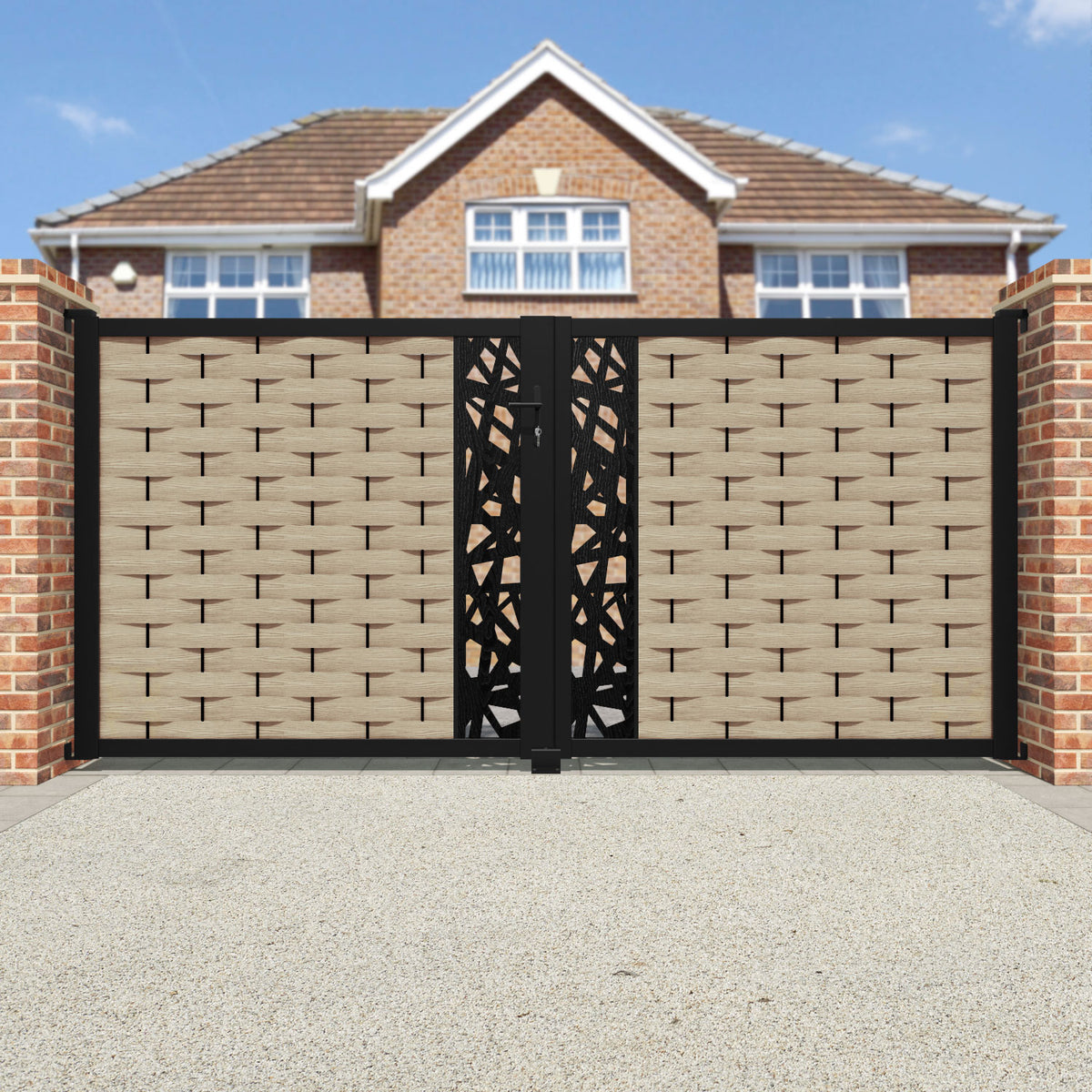 Ripple Prism Straight Top Driveway Gate Light Oak - Middle Screen