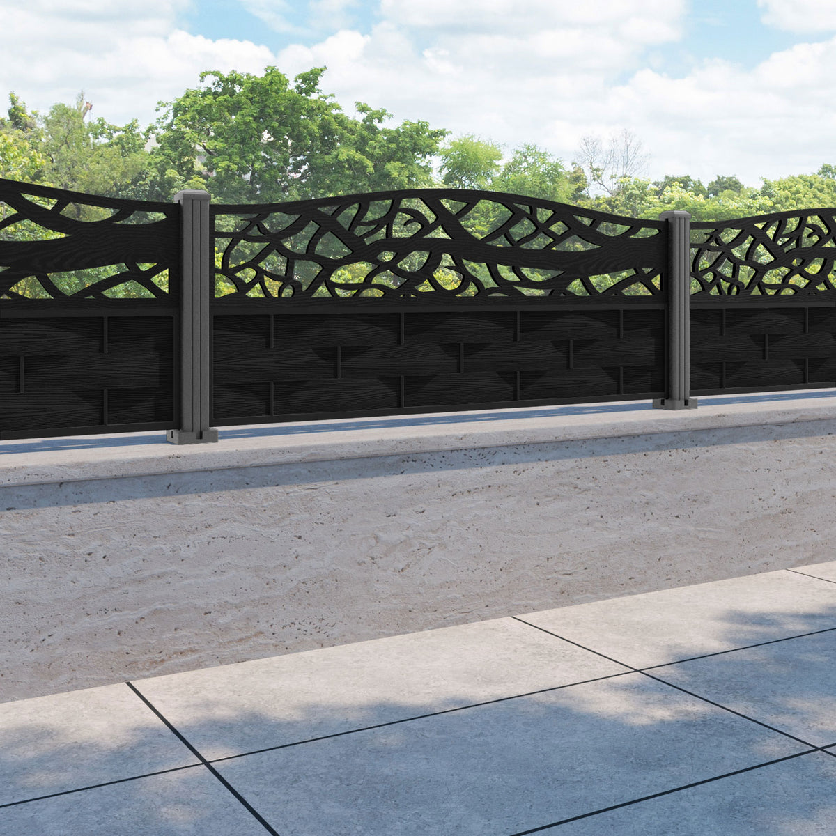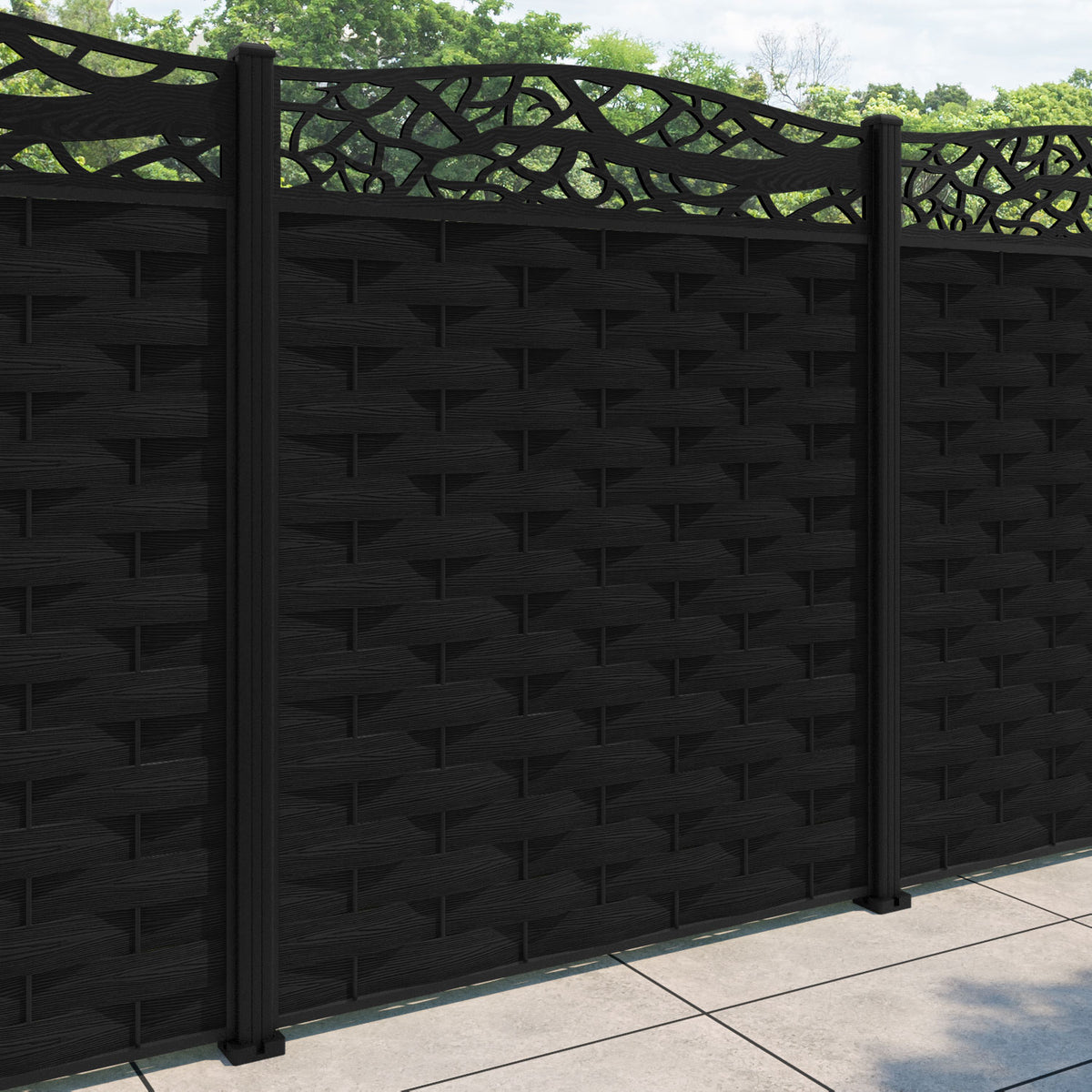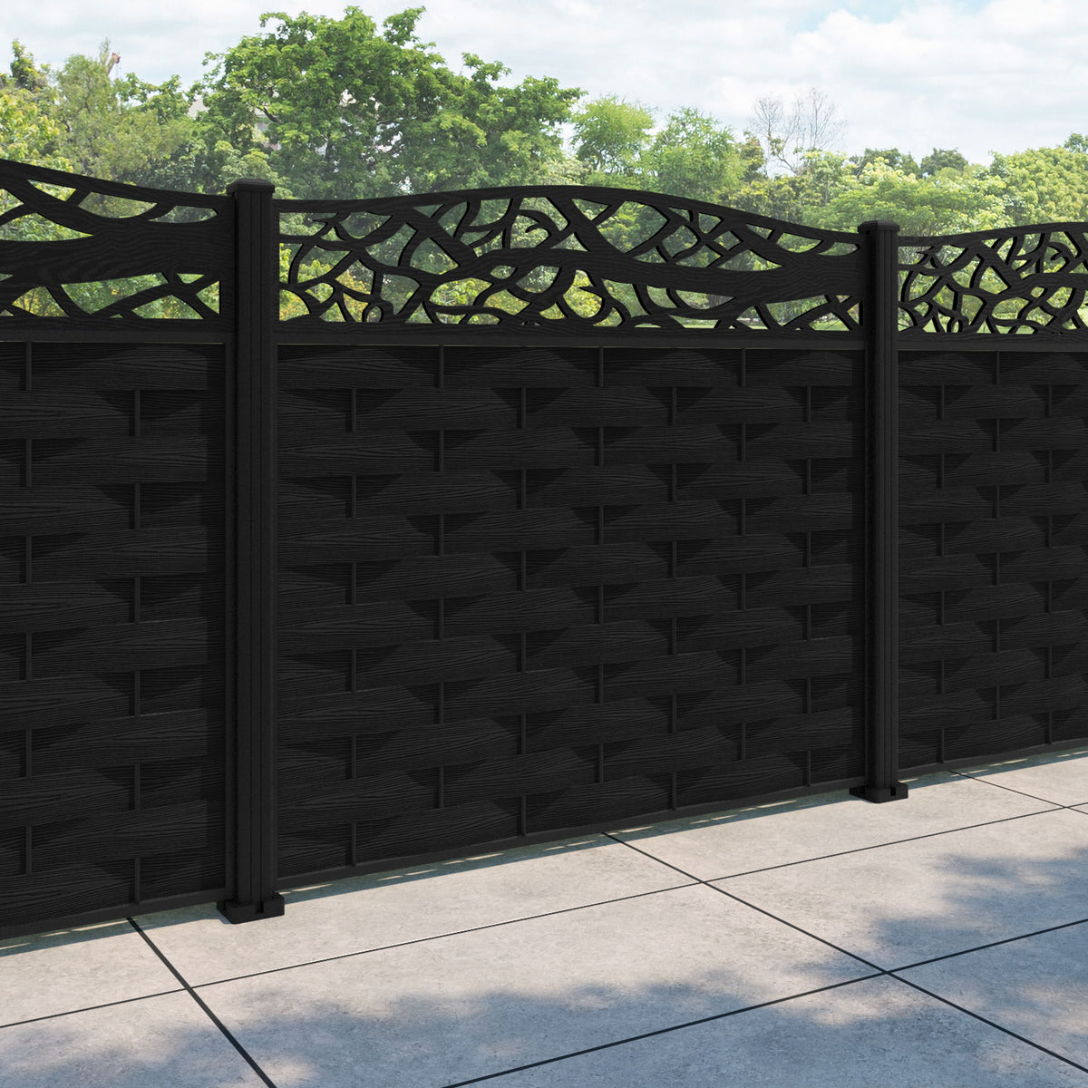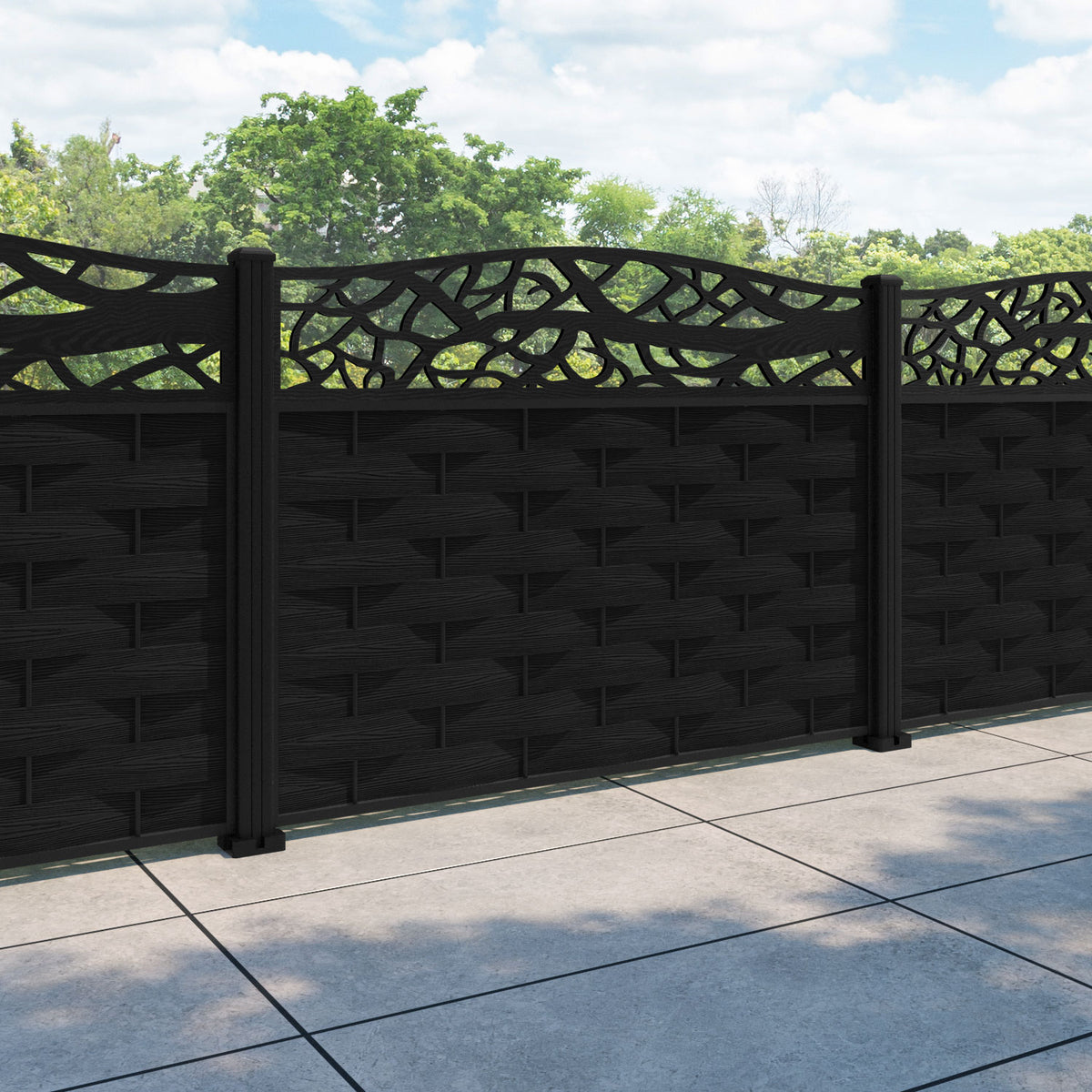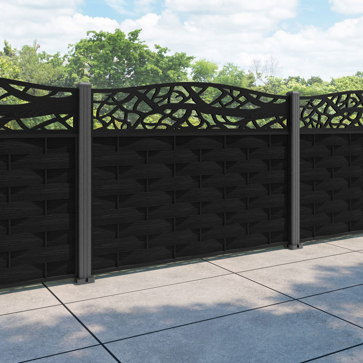 Ripple Twilight Curved Top Fence Panel Black - with our aluminium posts