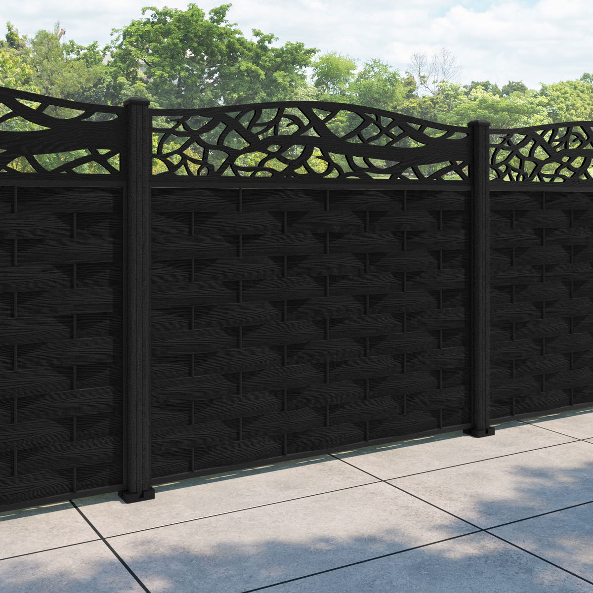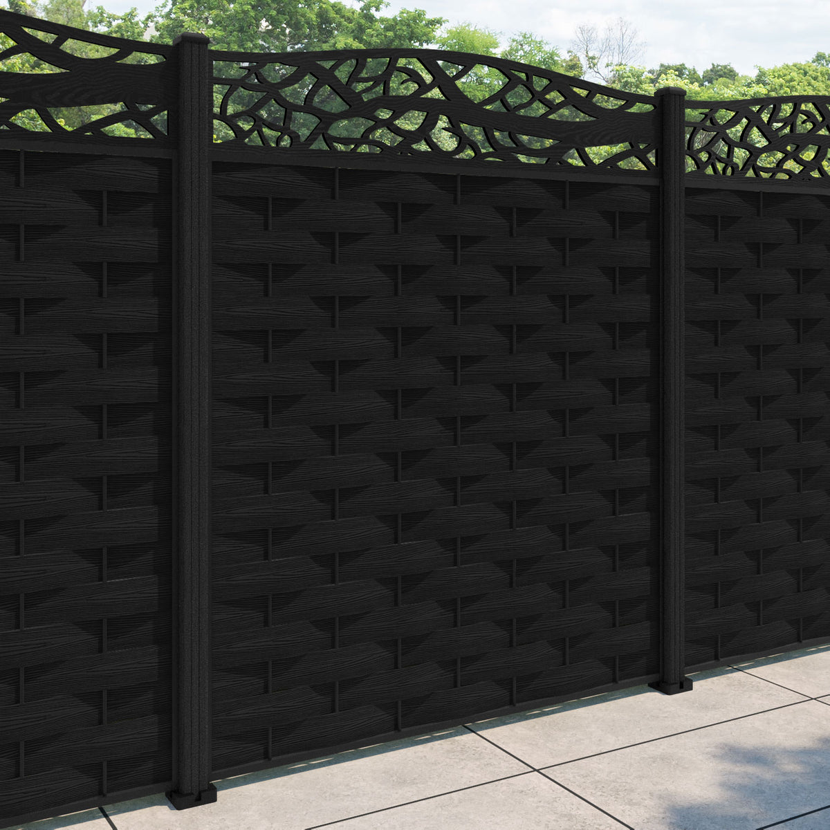 Ripple Twilight Curved Top Fence Panel Black - with our composite posts