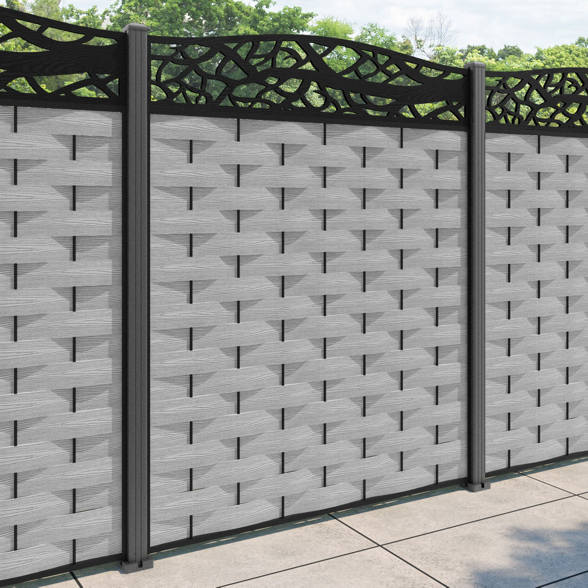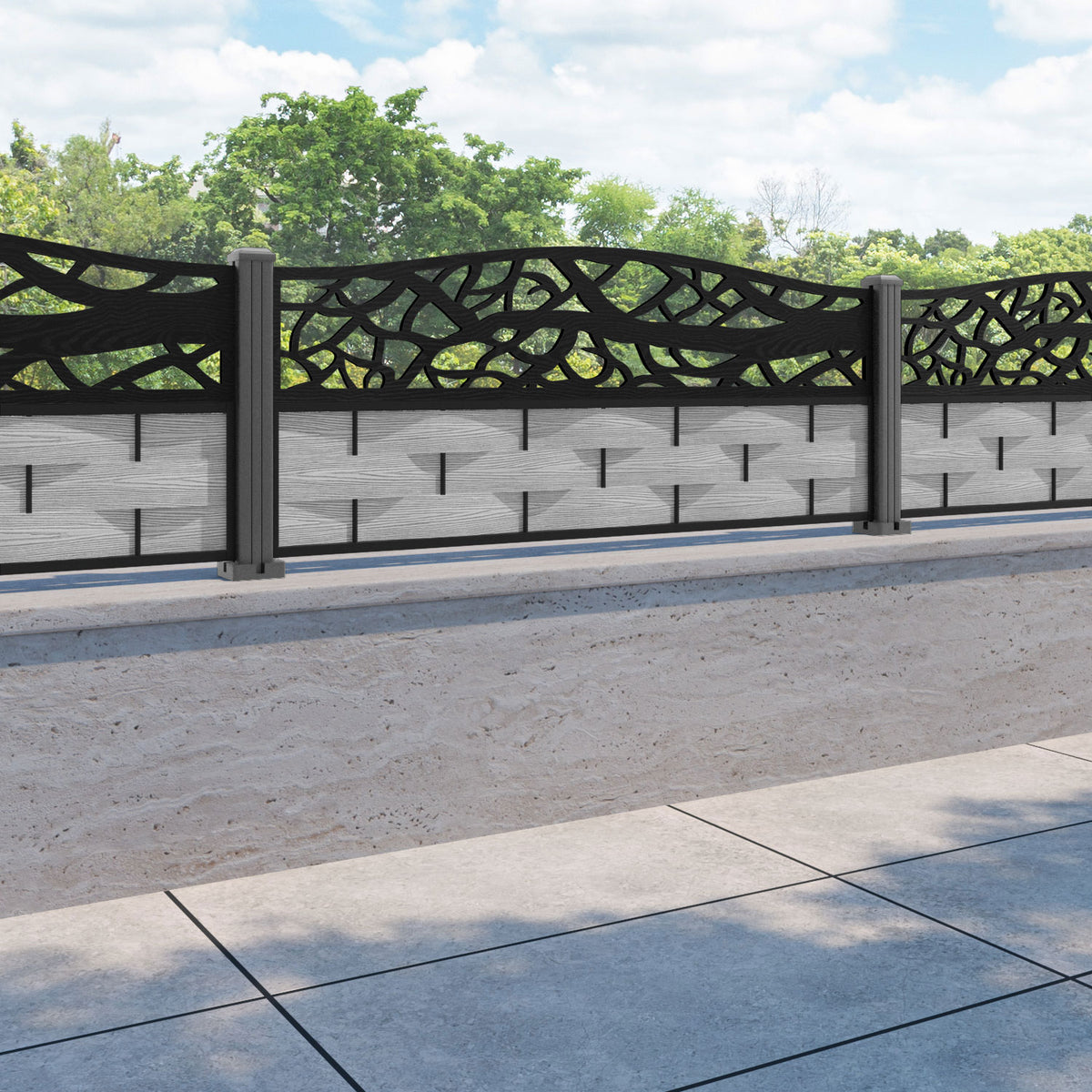 Ripple Twilight Curved Top Fence Panel Light Grey - with our aluminium posts