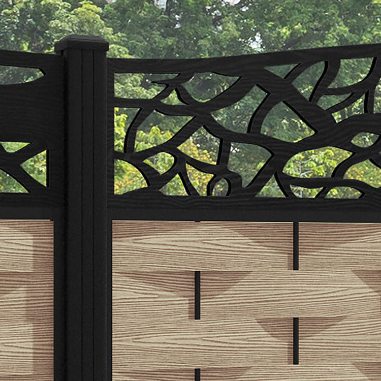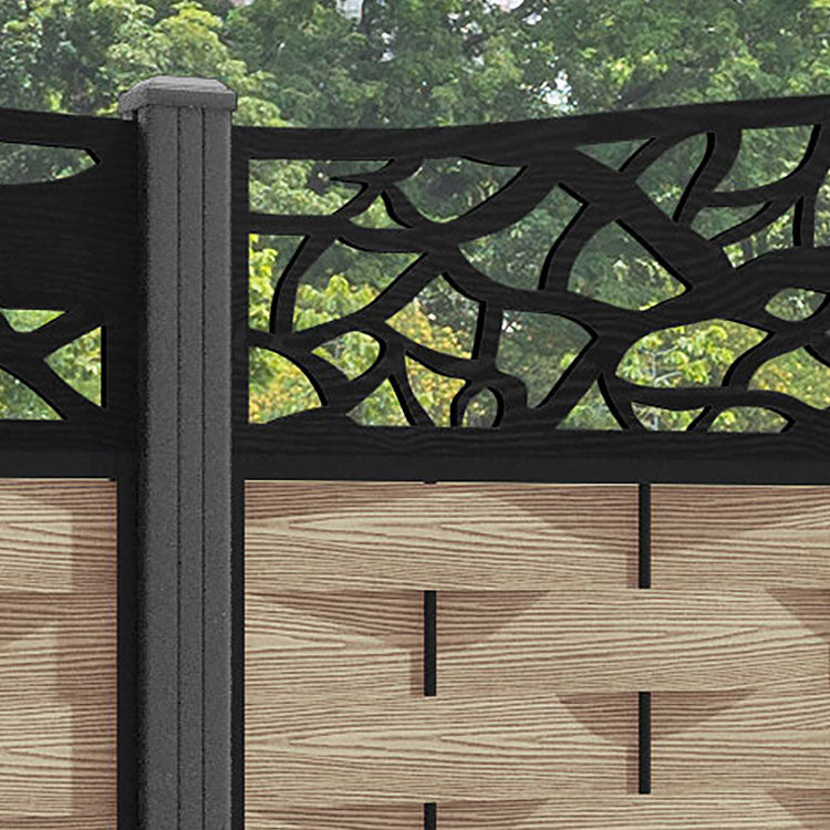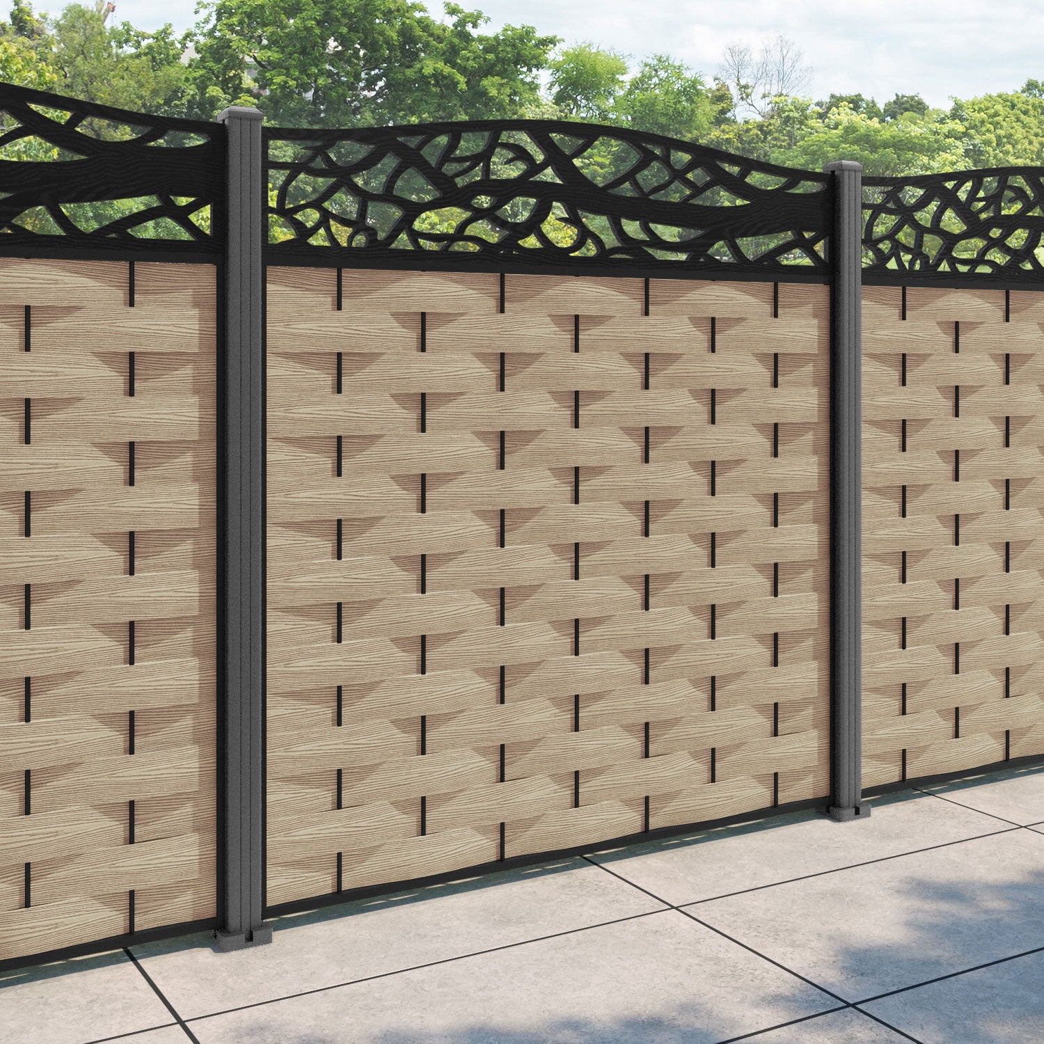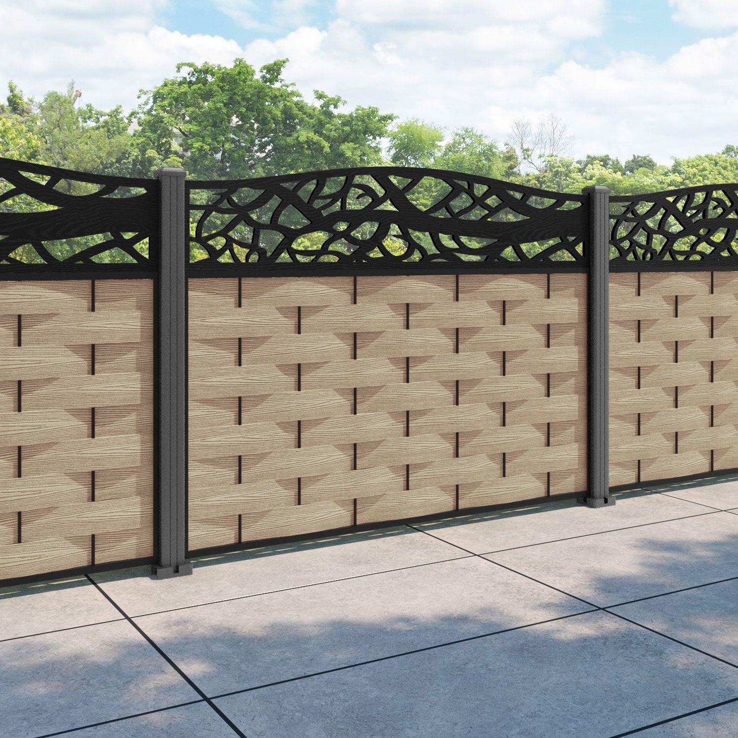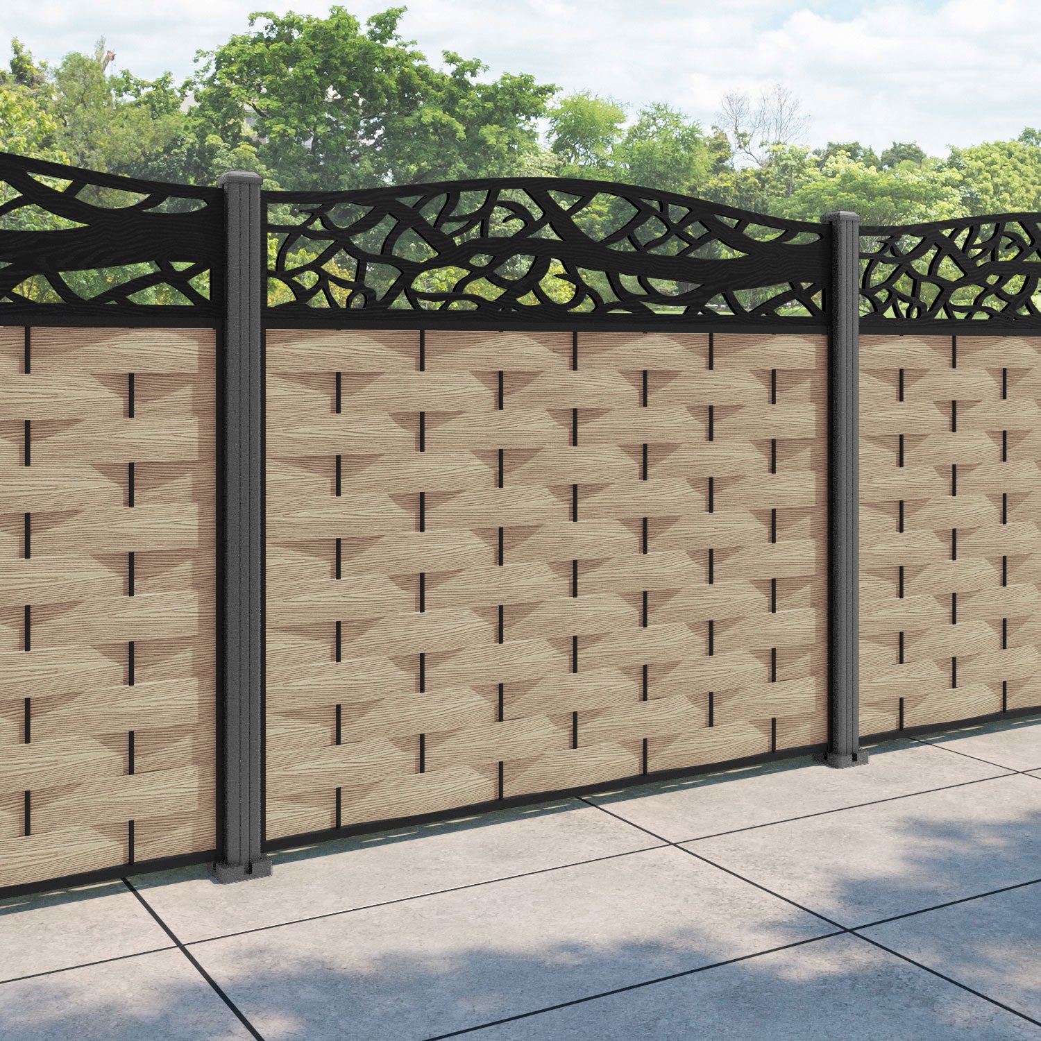 Ripple Twilight Curved Top Fence Panel Light Oak - with our aluminium posts
