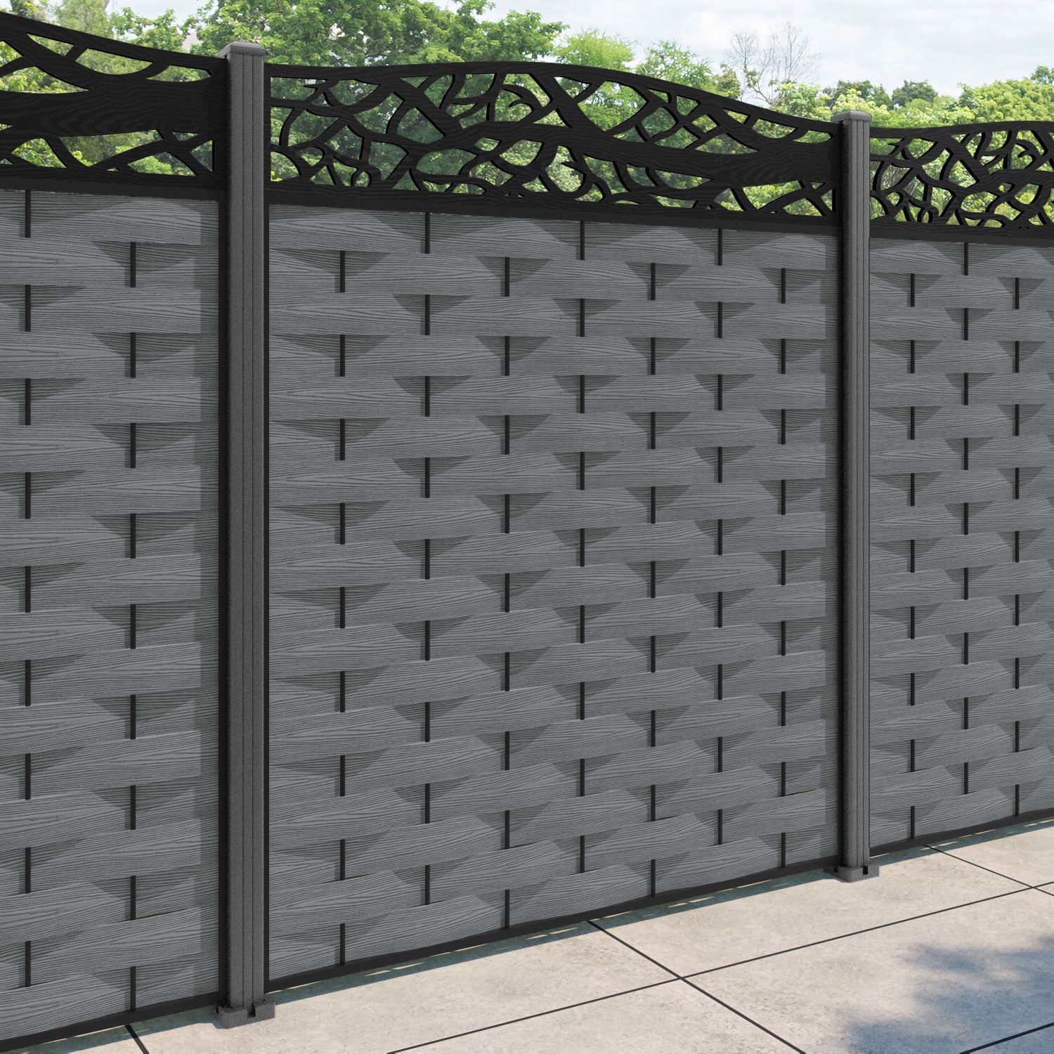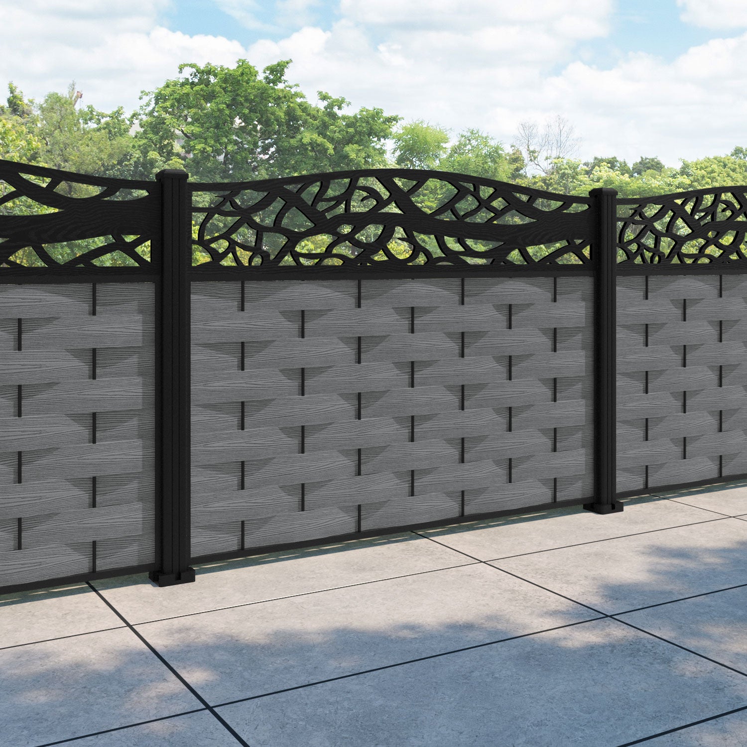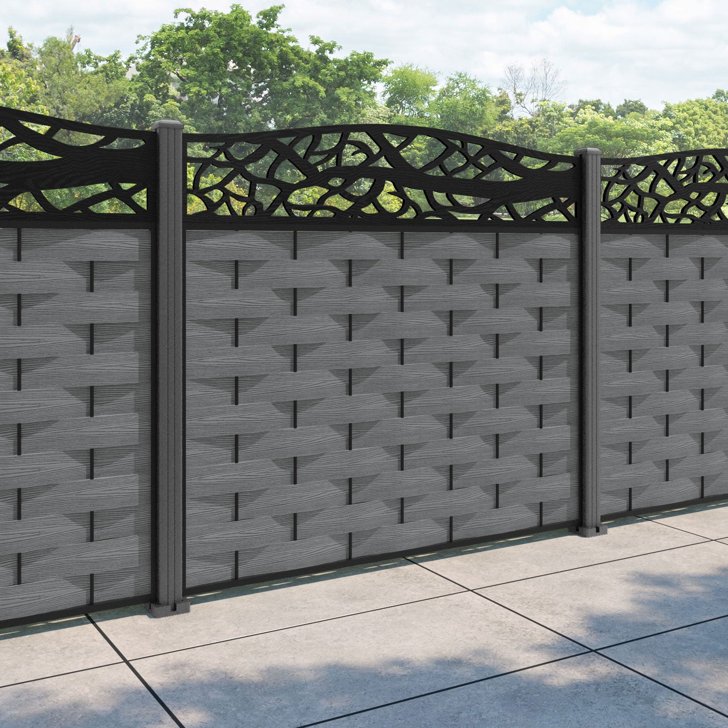 Ripple Twilight Curved Top Fence Panel Mid Grey - with our aluminium posts