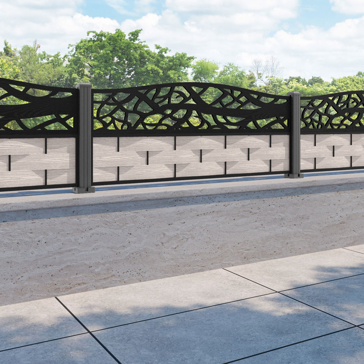Ripple Twilight Curved Top Fence Panel Mid Stone - with our aluminium posts