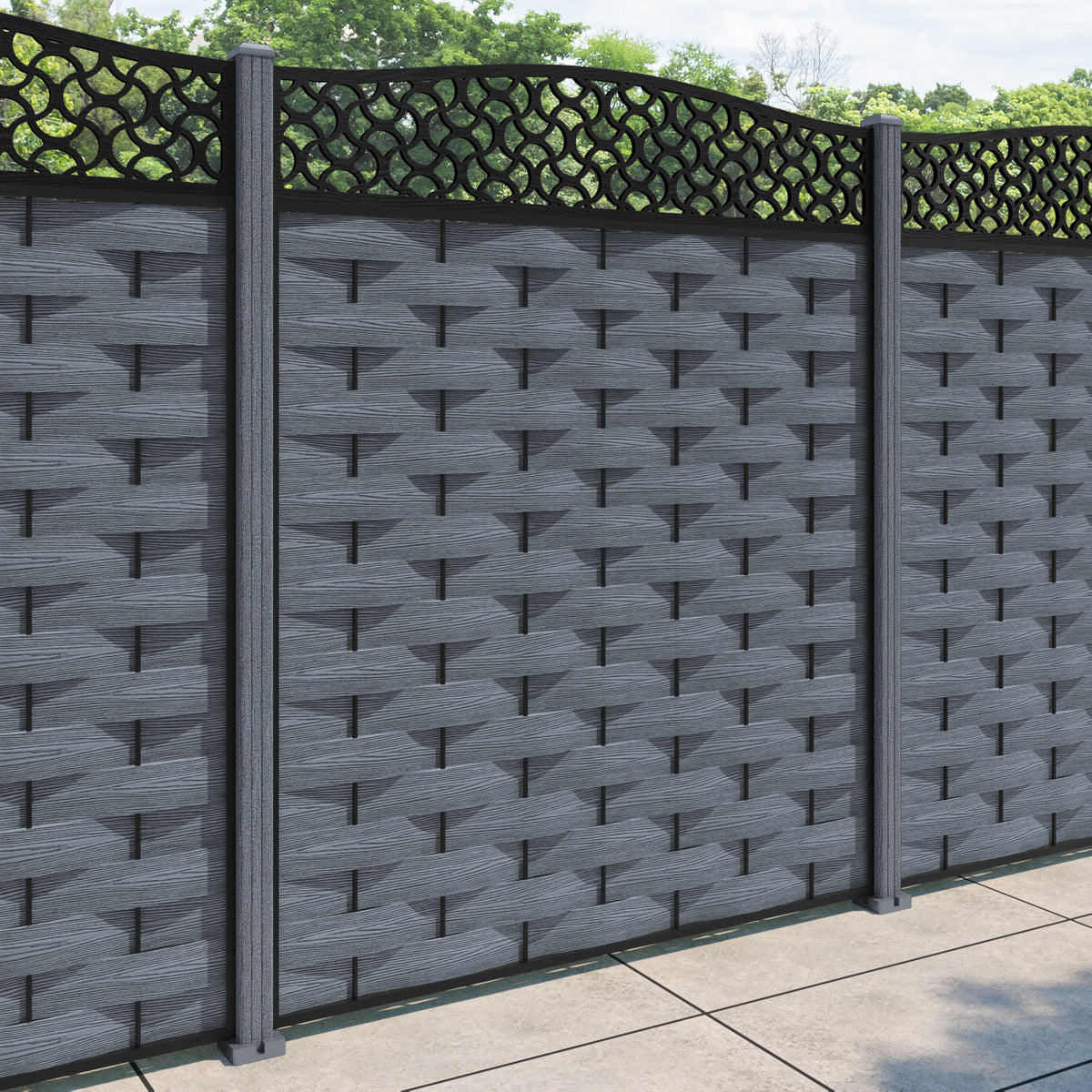 Ripple Vida Curved Top Fence Panel Anthracite - with our composite posts