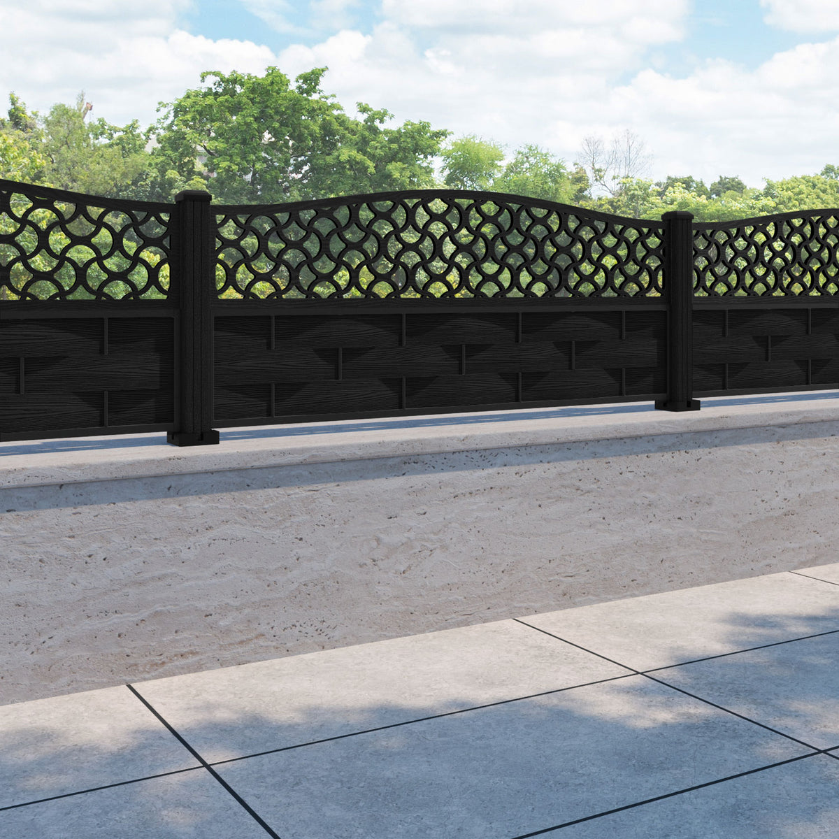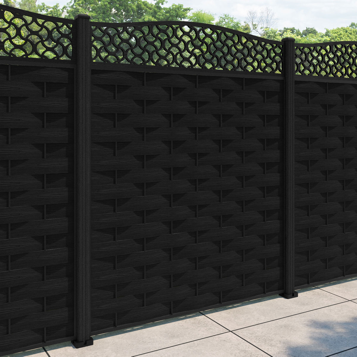 Ripple Vida Curved Top Fence Panel Black - with our composite posts