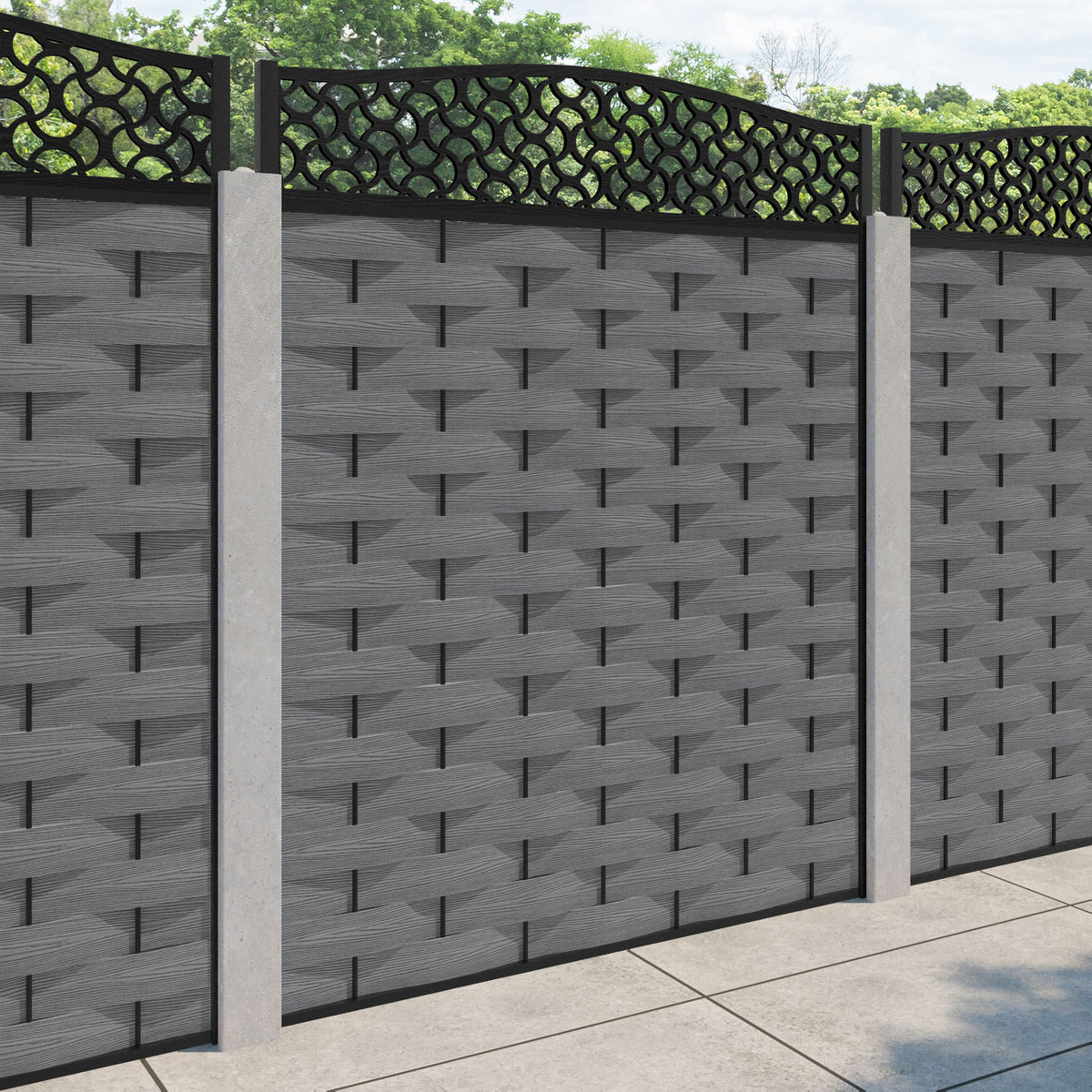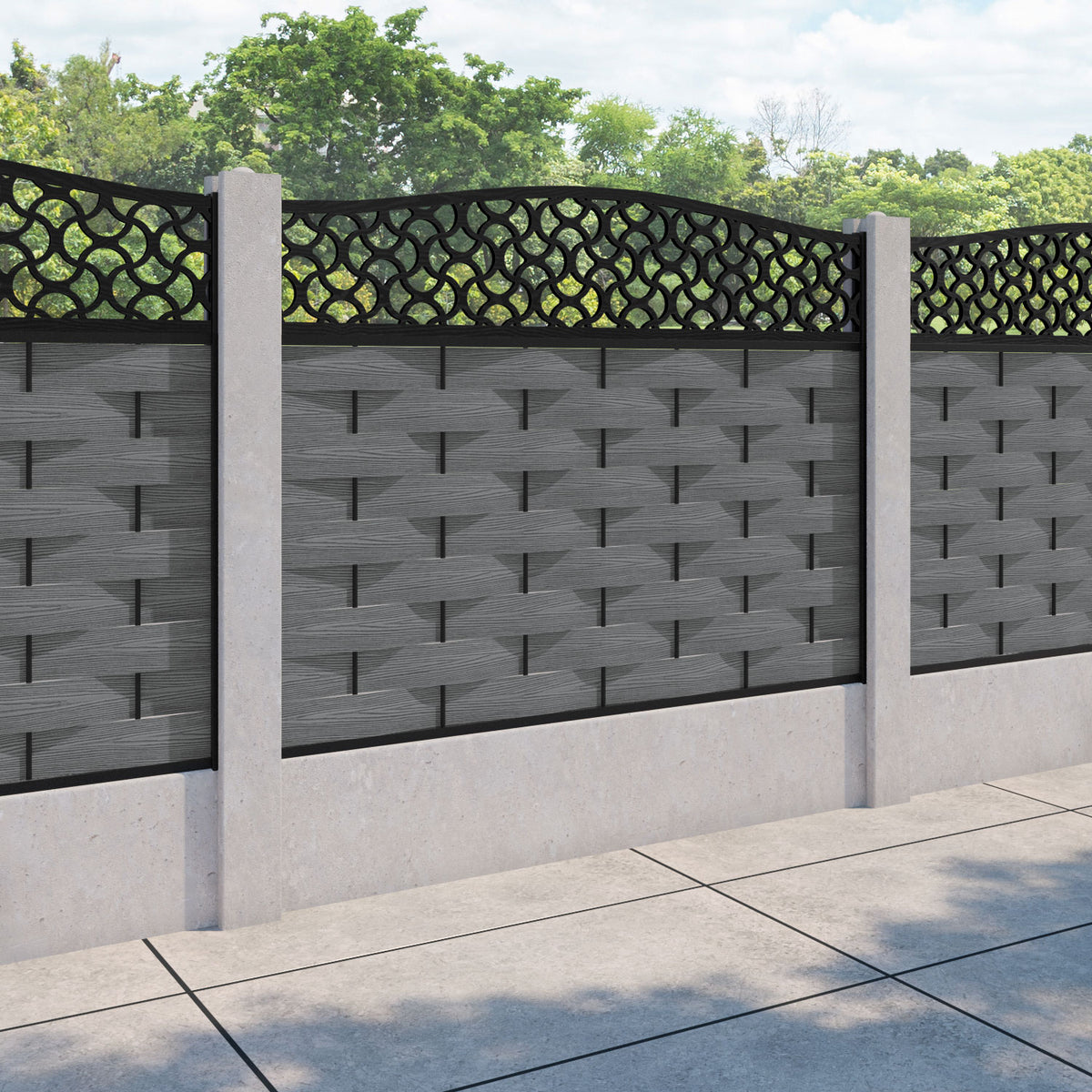 Ripple Vida Curved Top Fence Panel Mid Grey - for existing concrete posts