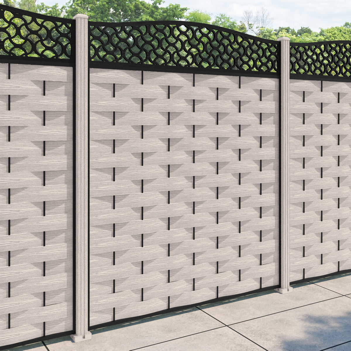 Ripple Vida Curved Top Fence Panel Mid Stone - with our composite posts