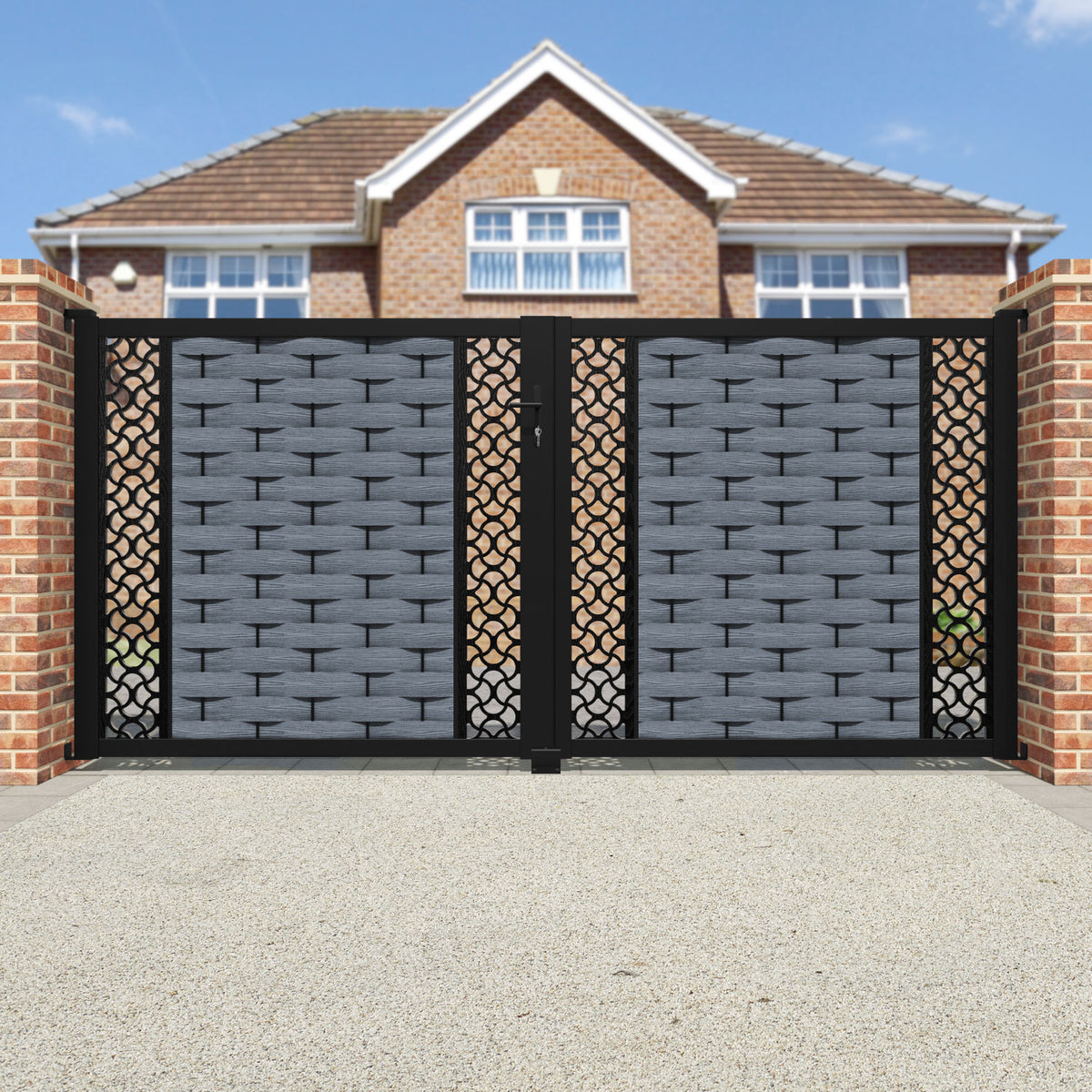 Pair your gate with our eco-friendly composite or aluminium slats for a seamless match with our fencing collections, ensuring a stylish and cohesive look.