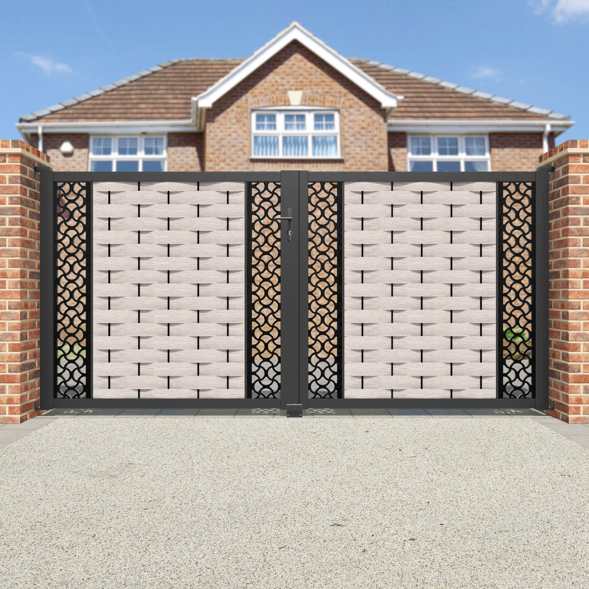 Pair your gate with our eco-friendly composite or aluminium slats for a seamless match with our fencing collections, ensuring a stylish and cohesive look.