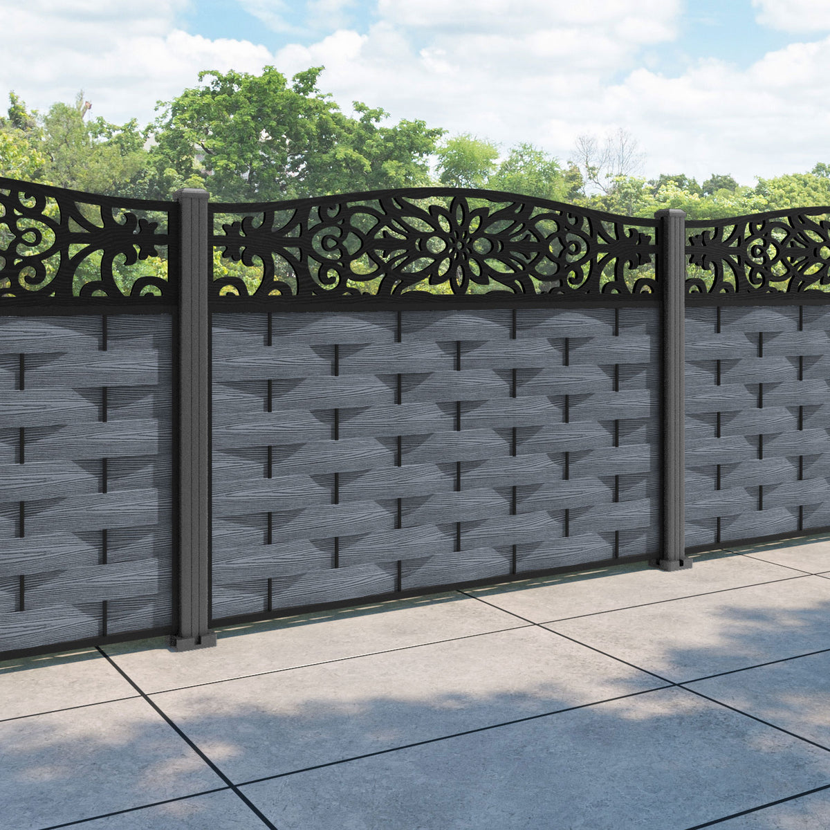 Ripple Windsor Curved Top Fence Panel Anthracite - with our aluminium posts