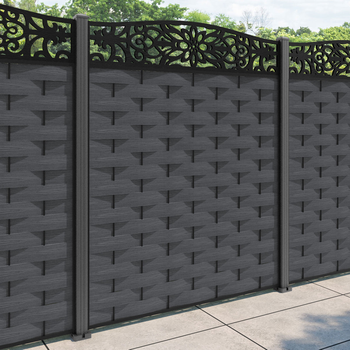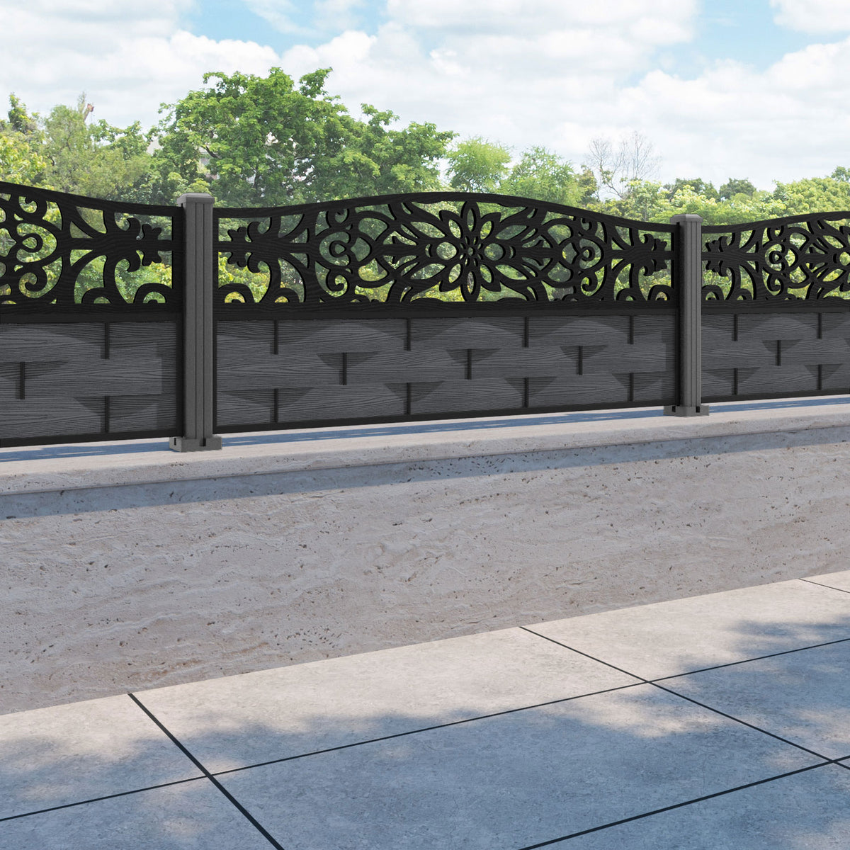 Ripple Windsor Curved Top Fence Panel Dark Grey - with our aluminium posts