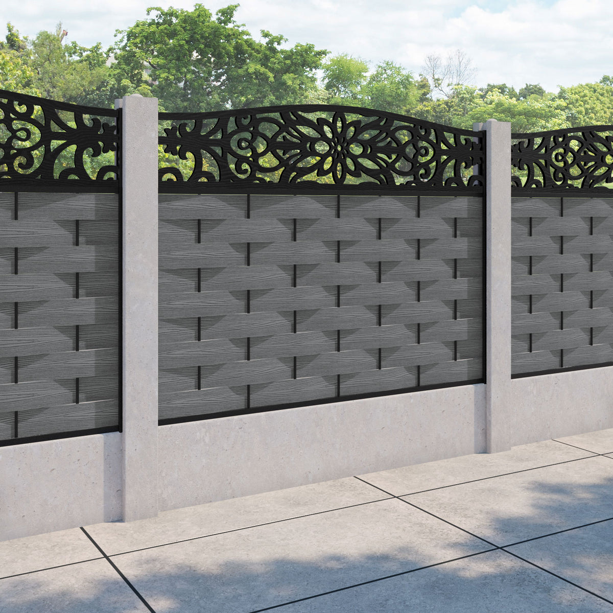 Ripple Windsor Curved Top Fence Panel Mid Grey - for existing concrete posts