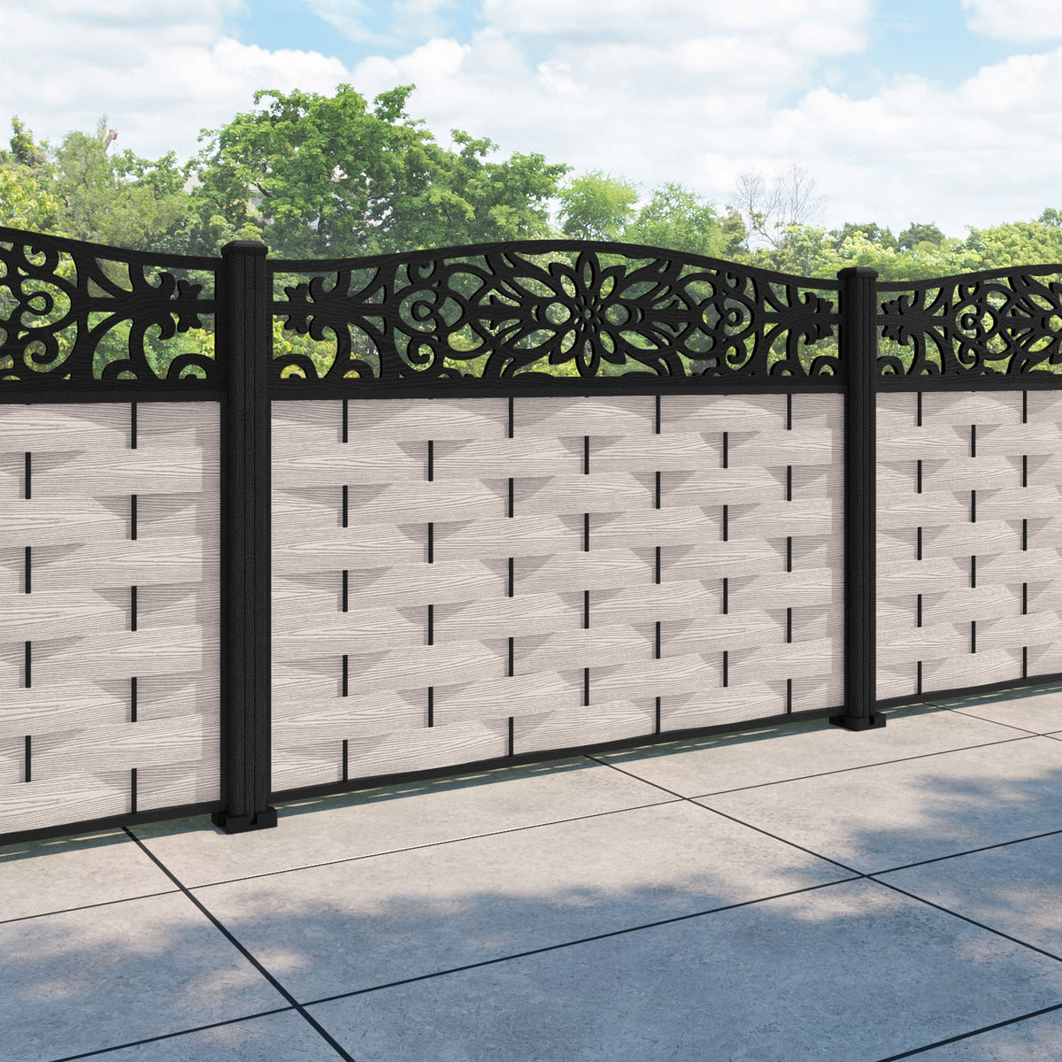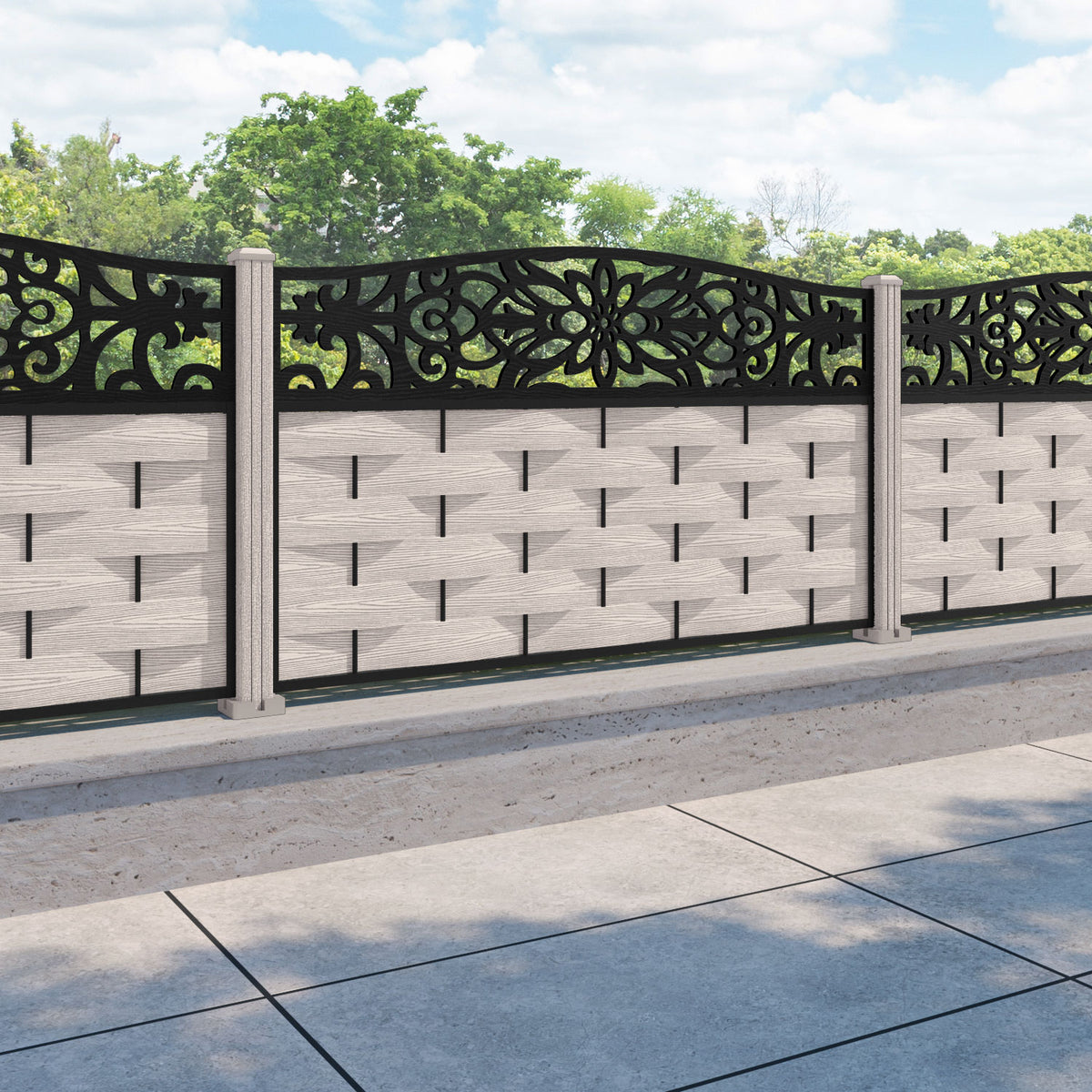 Ripple Windsor Curved Top Fence Panel Mid Stone - with our composite posts