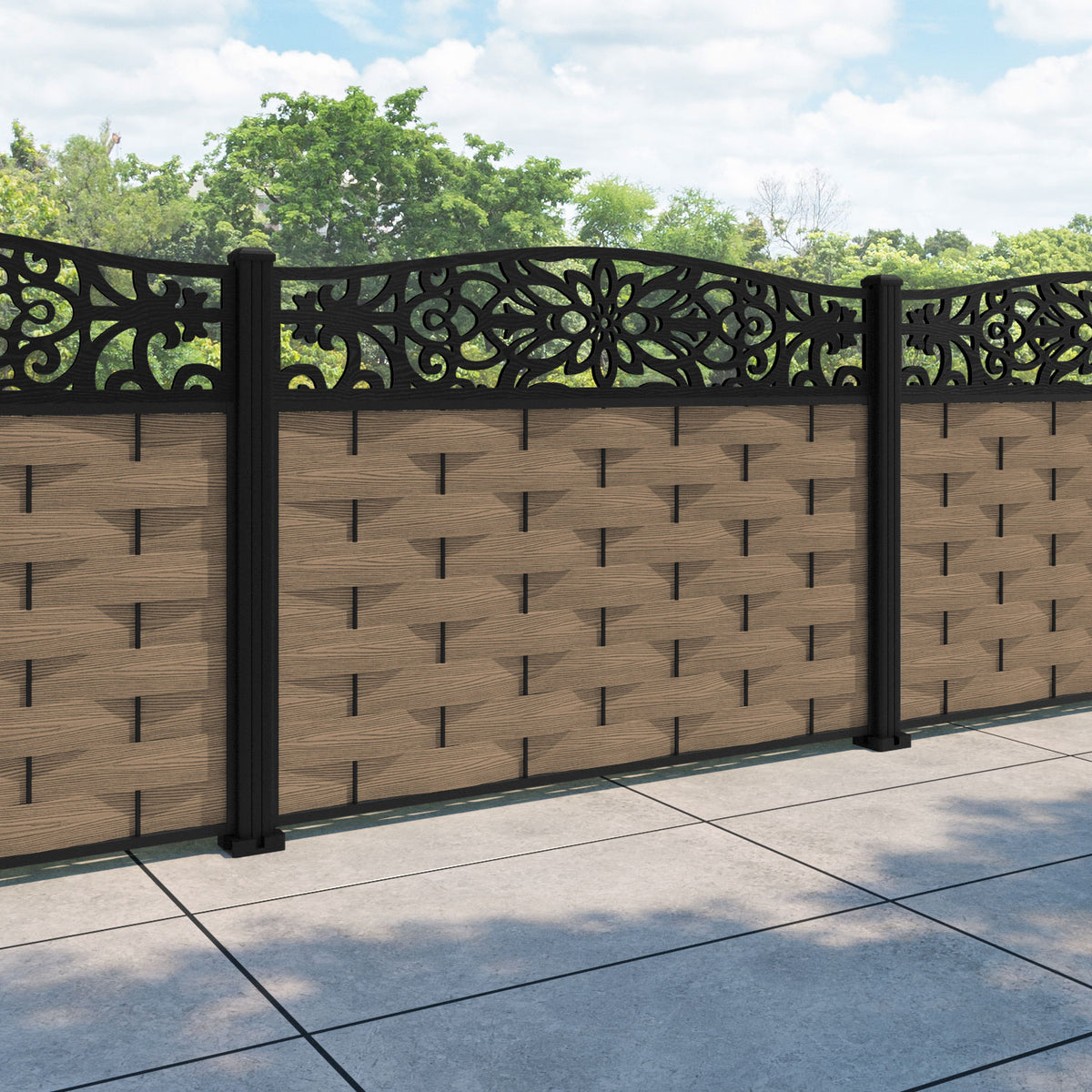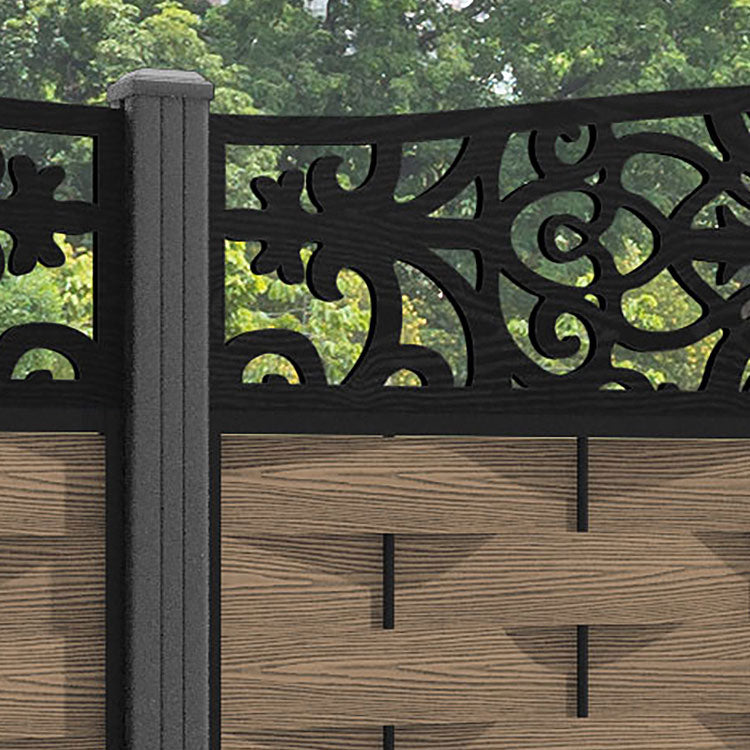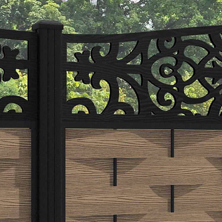 Ripple Windsor Curved Top Fence Panel Teak - with our aluminium posts