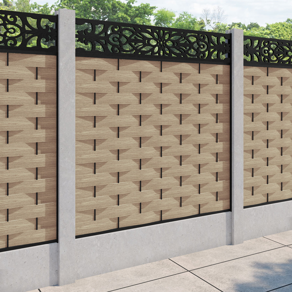 Ripple Windsor Fence Panel Light Oak - for existing concrete posts