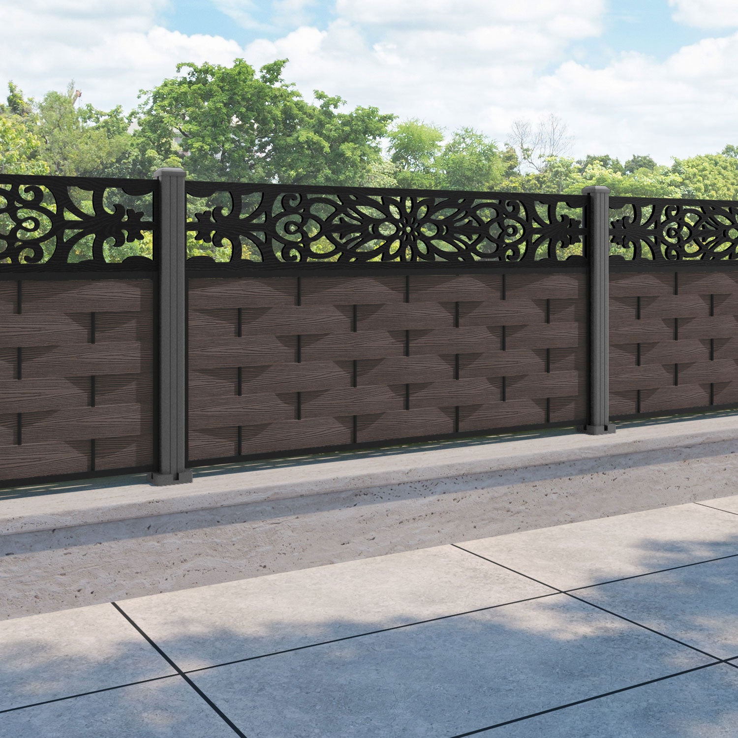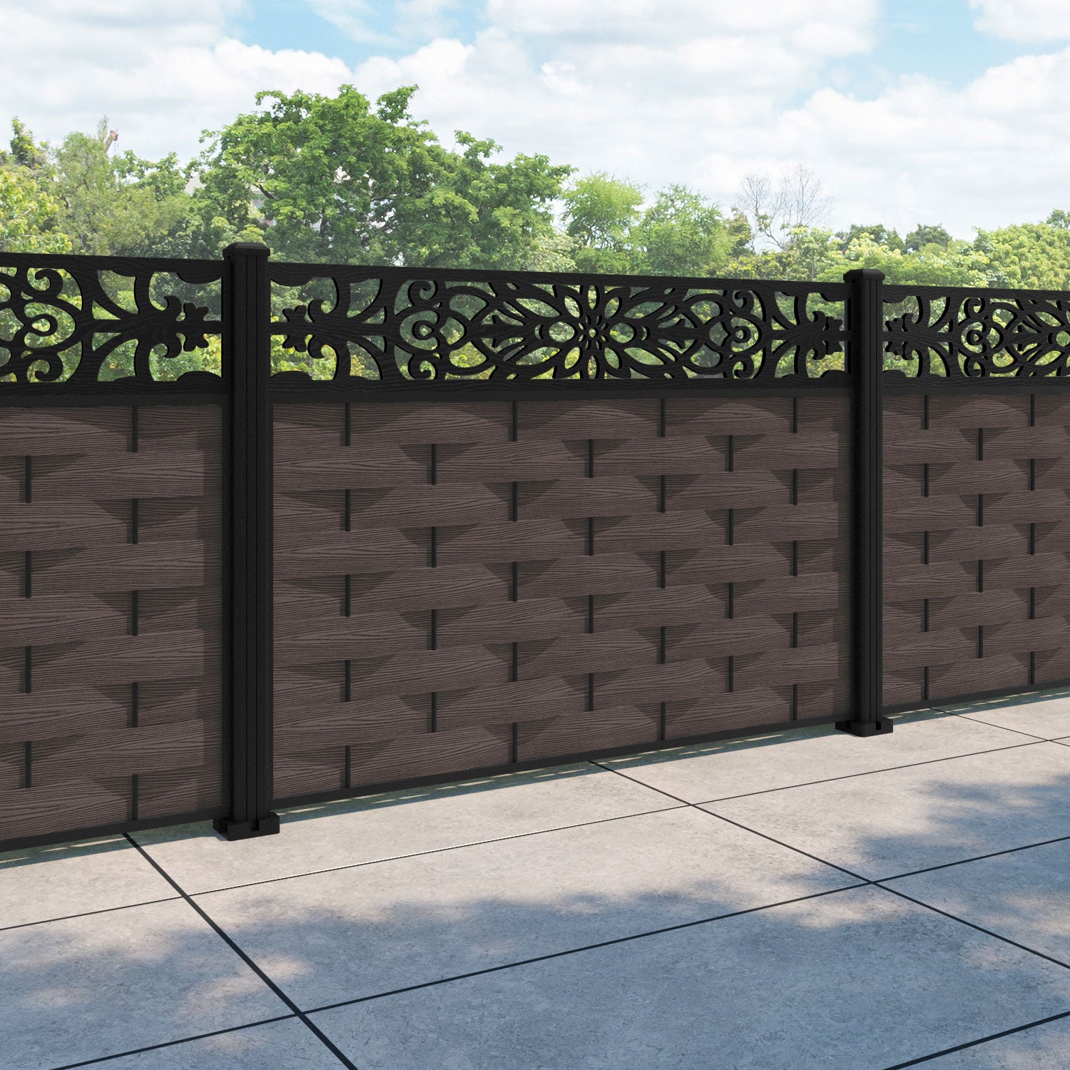 Ripple Windsor Fence Panel Mid Brown - with our aluminium posts