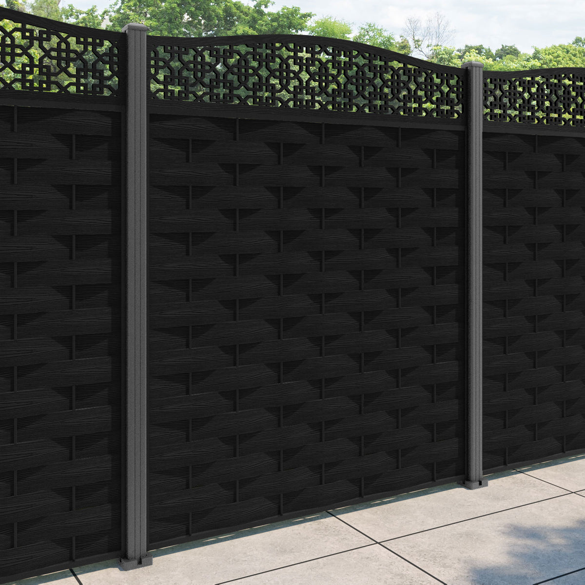 Ripple Zaria Curved Top Fence Panel Black - with our aluminium posts
