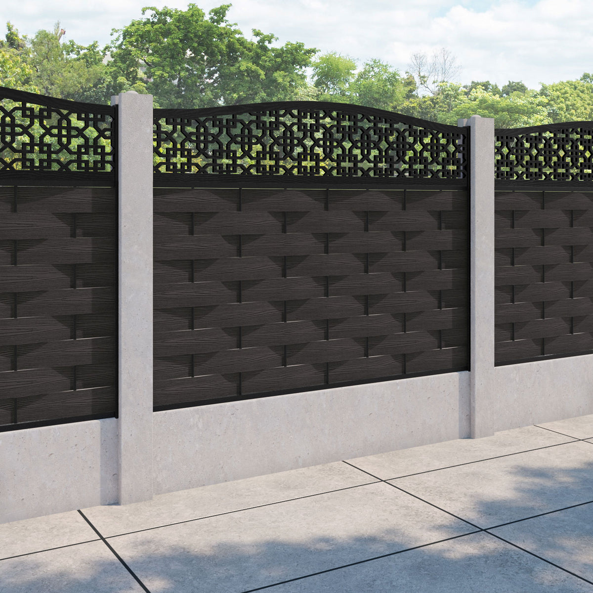 Ripple Zaria Curved Top Fence Panel Dark Oak - for existing concrete posts