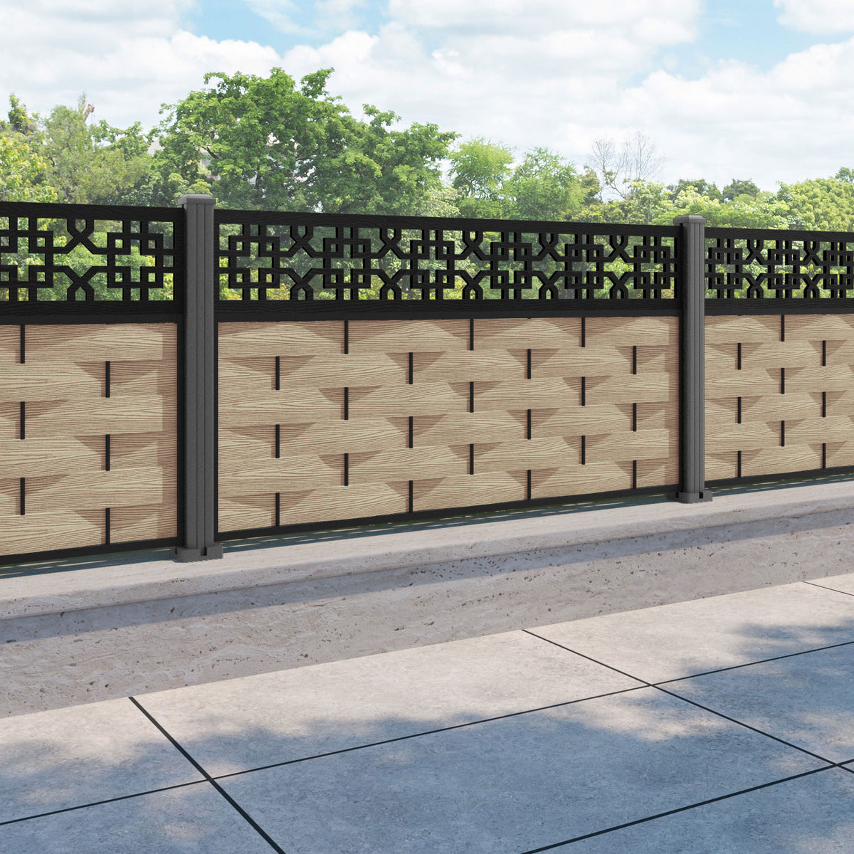 Ripple Zaria Fence Panel Light Oak - with our aluminium posts