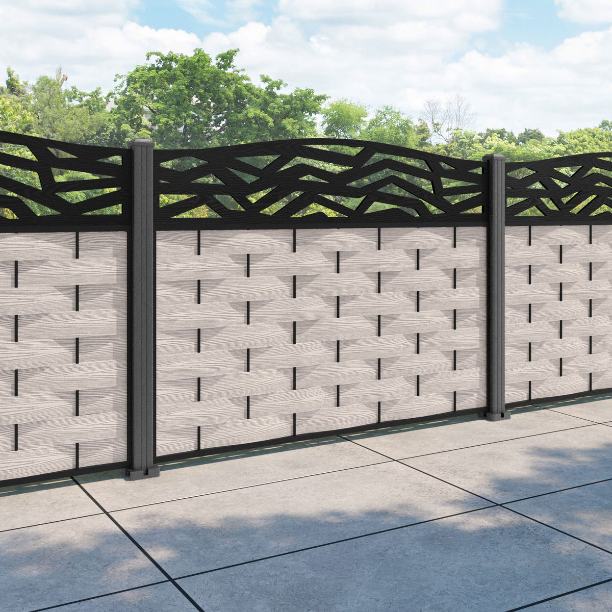 Ripple Zenith Curved Top Fence Panel Mid Stone - with our aluminium posts