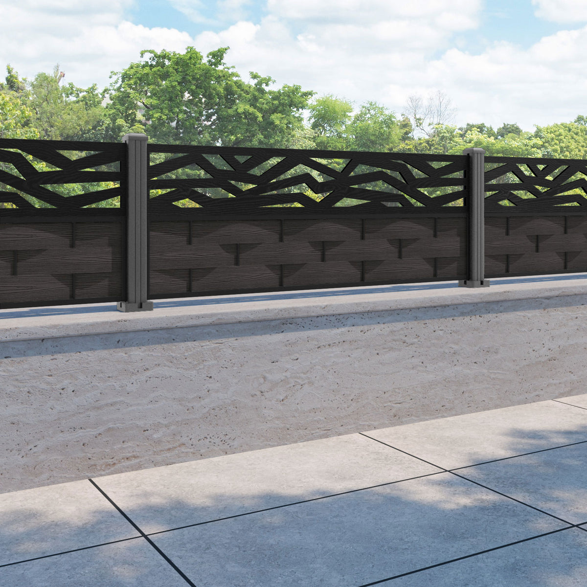 Ripple Zenith Fence Panel Dark Oak - with our aluminium posts