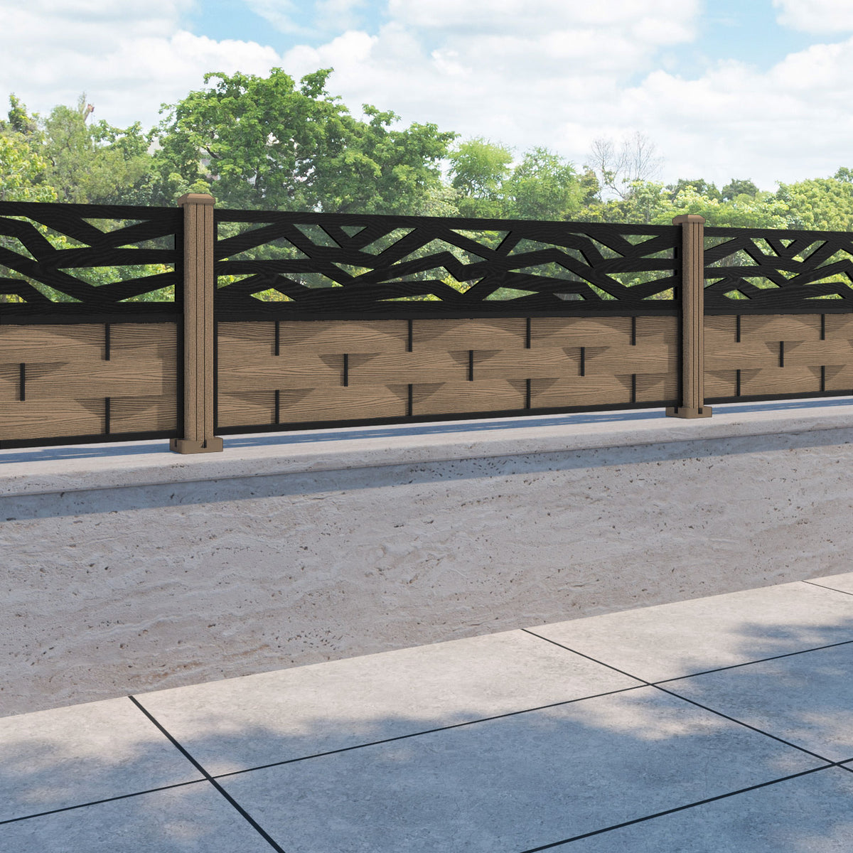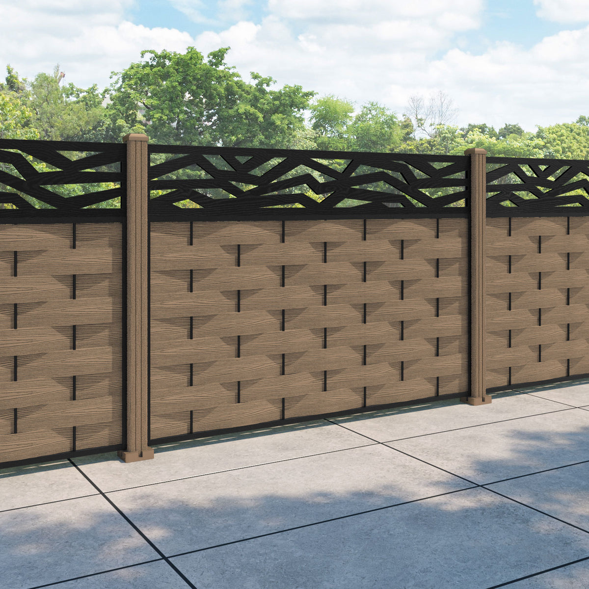 Ripple Zenith Fence Panel Teak - with our composite posts