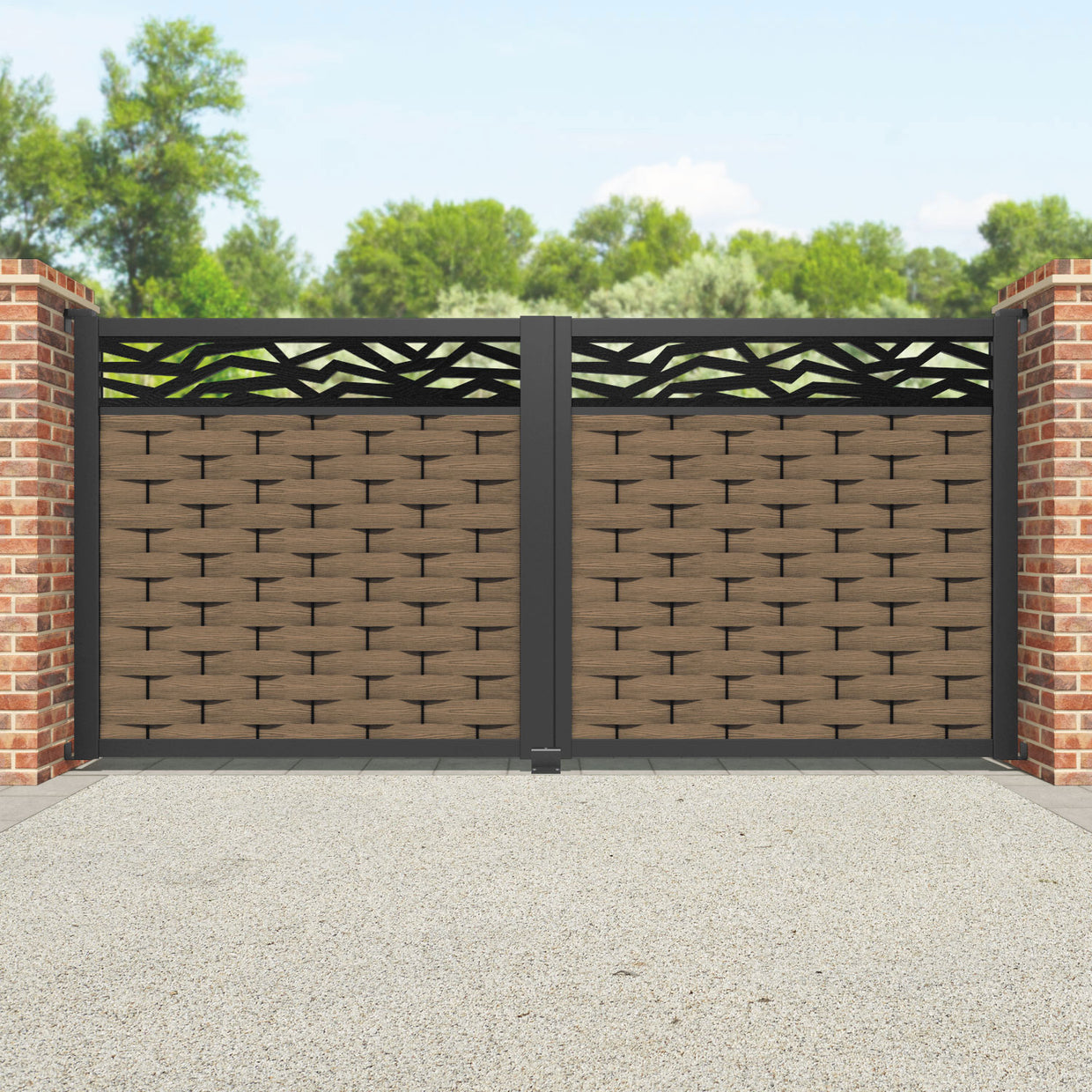 Ripple Zenith Straight Top Driveway Gate Teak - Top Screen