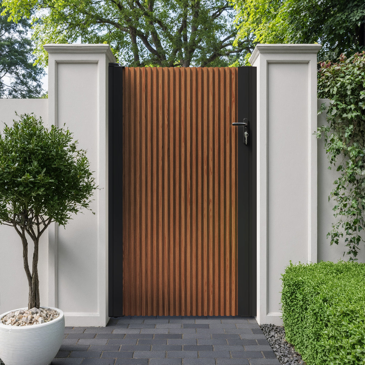 Pair your gate with our eco-friendly composite or aluminium slats for a seamless match to our fencing collections, ensuring a stylish and cohesive look.