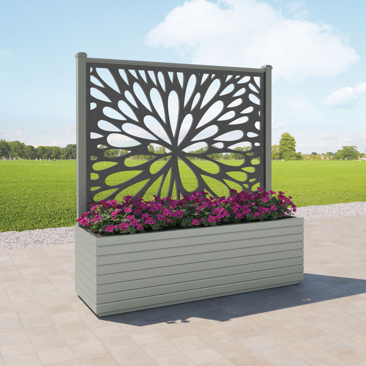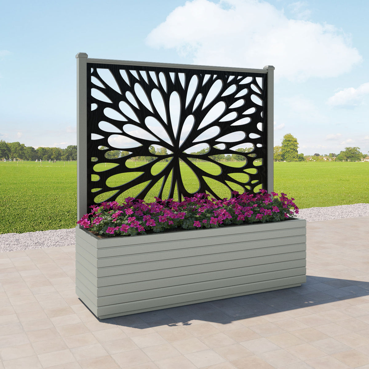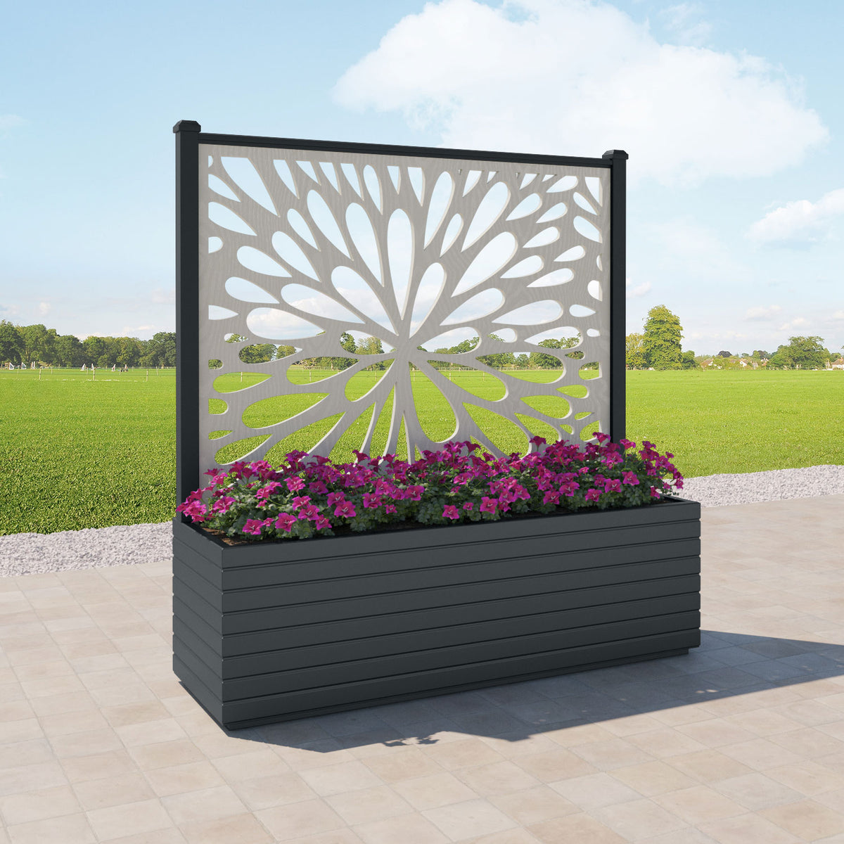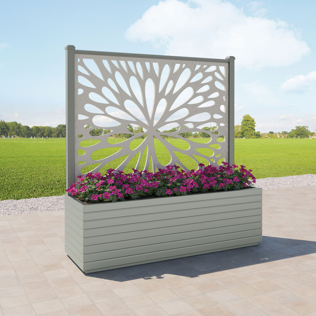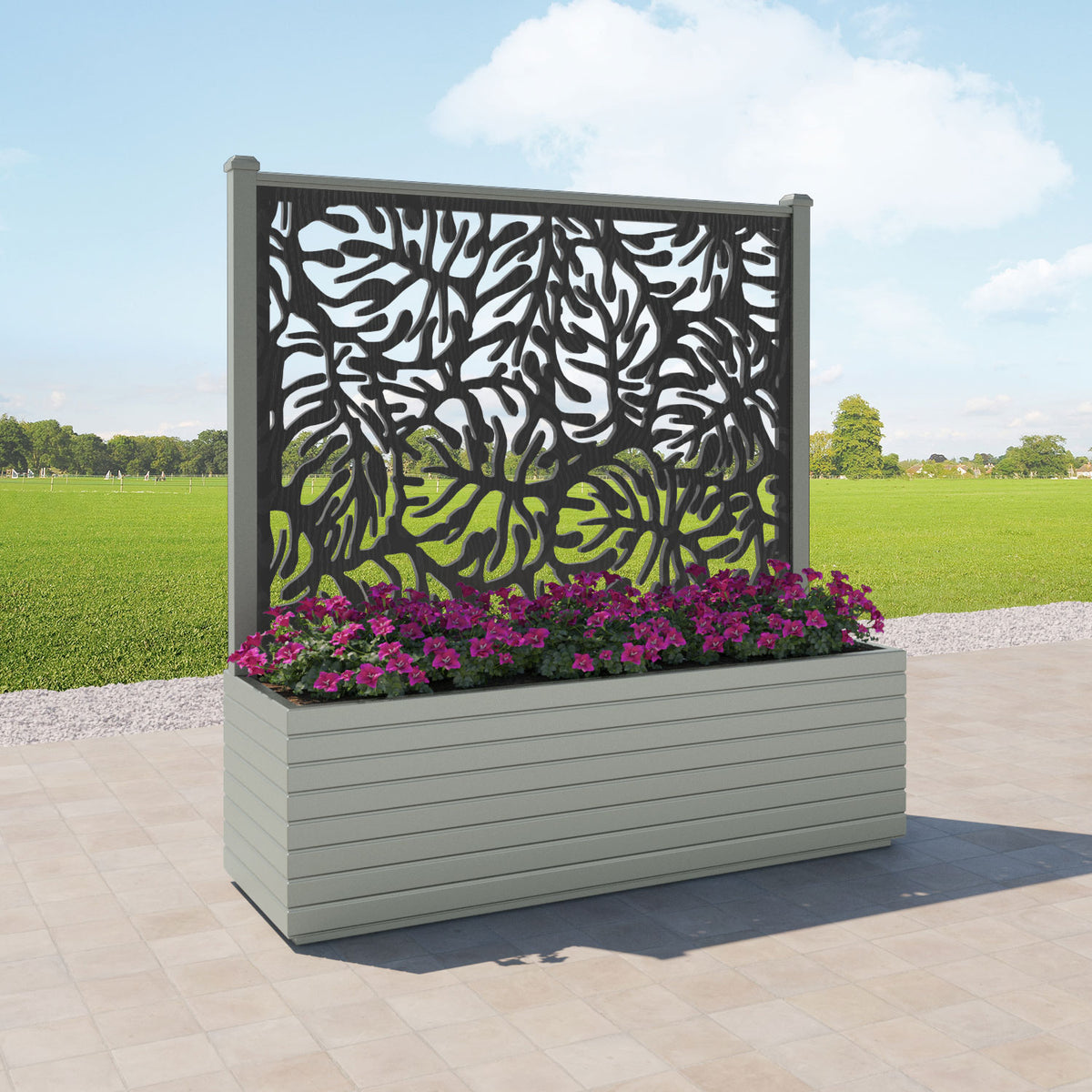 The planters are available in 6 different sizes and can be paired with any of our decorative screens that are available in 5 different colour options. The screens can be fixed at the back or in the centre of the planter. The centre option enables you to plant on both sides of the screen. They can also be ordered with a wheeled base for convenience, with lockable wheels for stability.