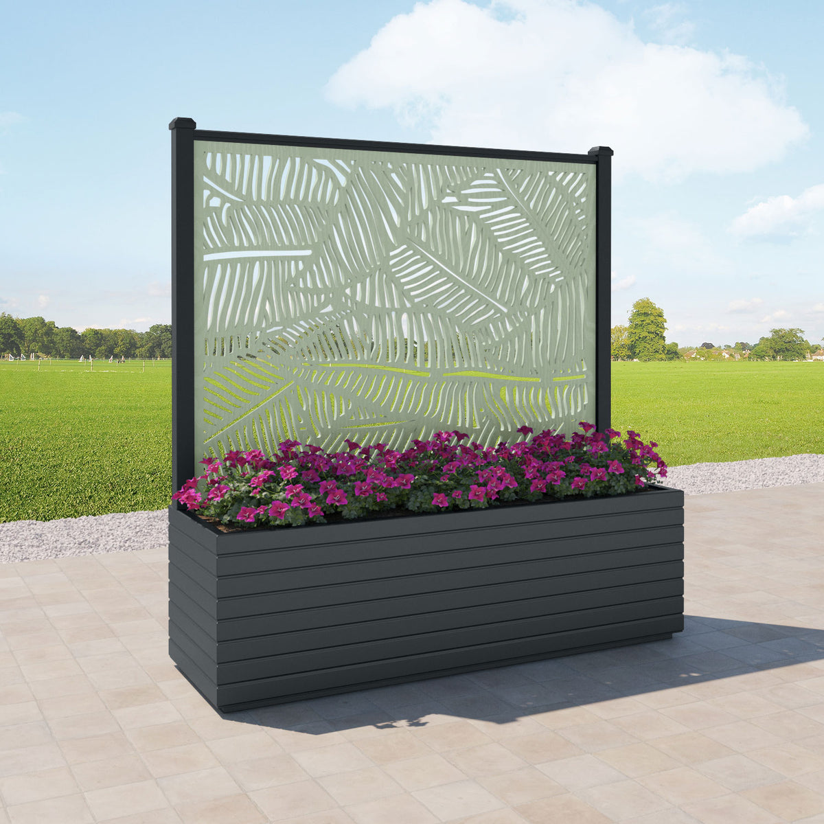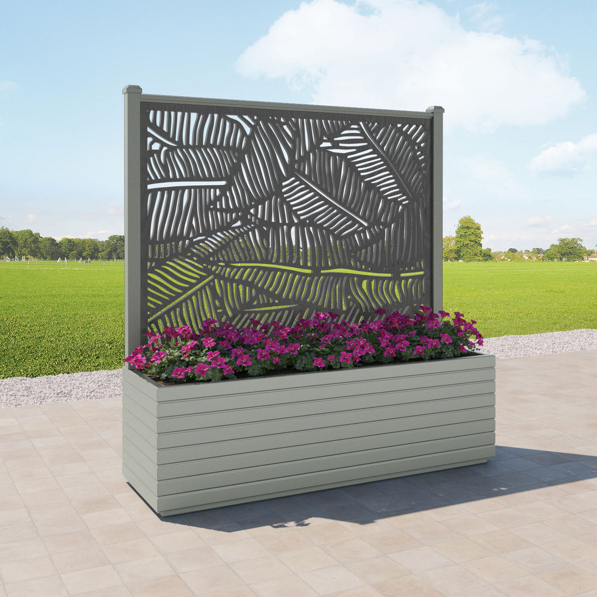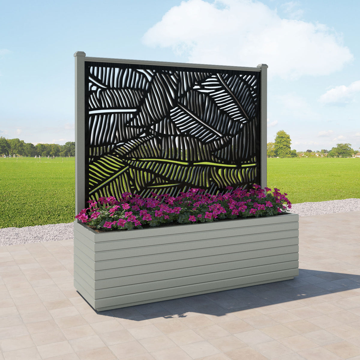The planters are available in 6 different sizes and can be paired with any of our decorative screens that are available in 5 different colour options. The screens can be fixed at the back or in the centre of the planter. The centre option enables you to plant on both sides of the screen. They can also be ordered with a wheeled base for convenience, with lockable wheels for stability.