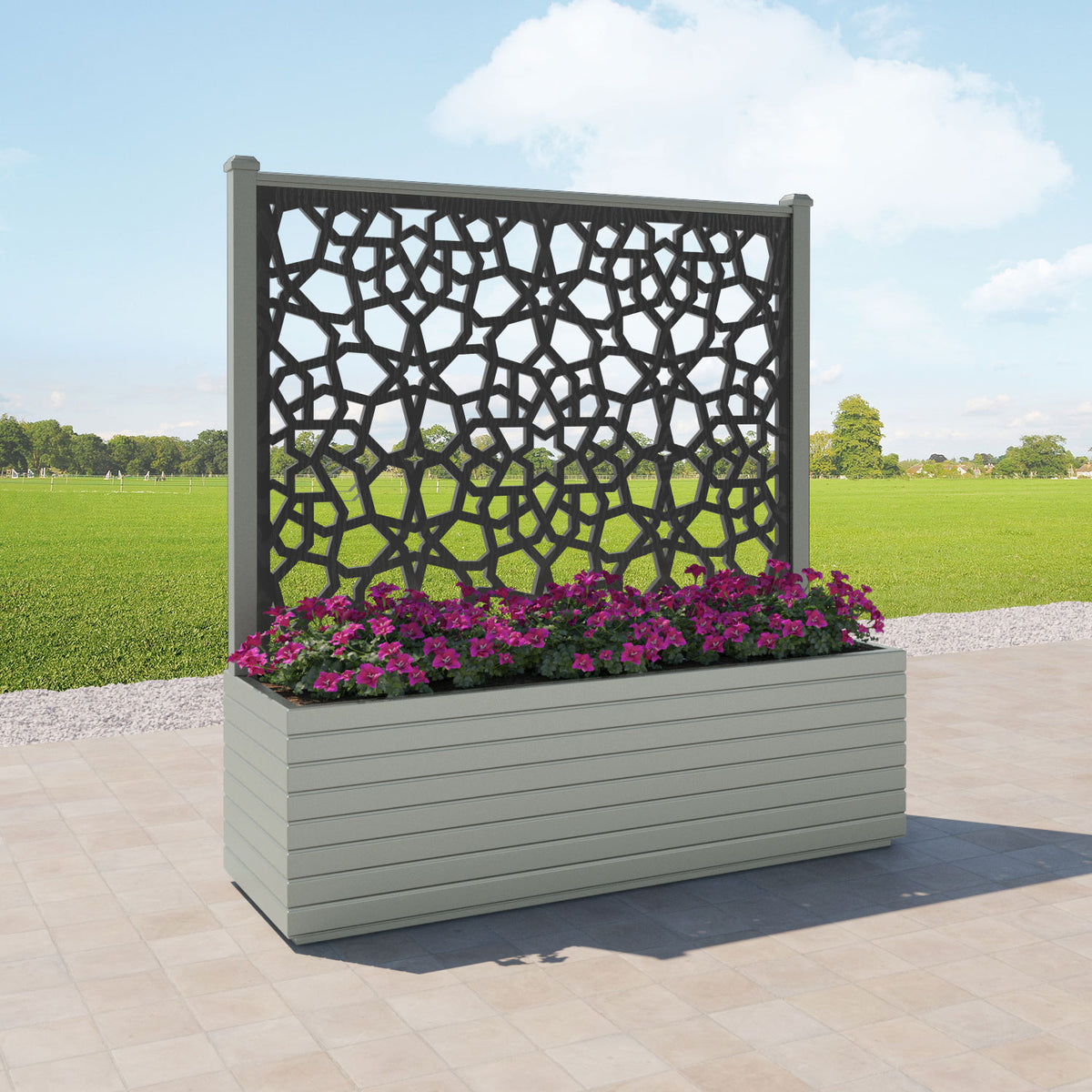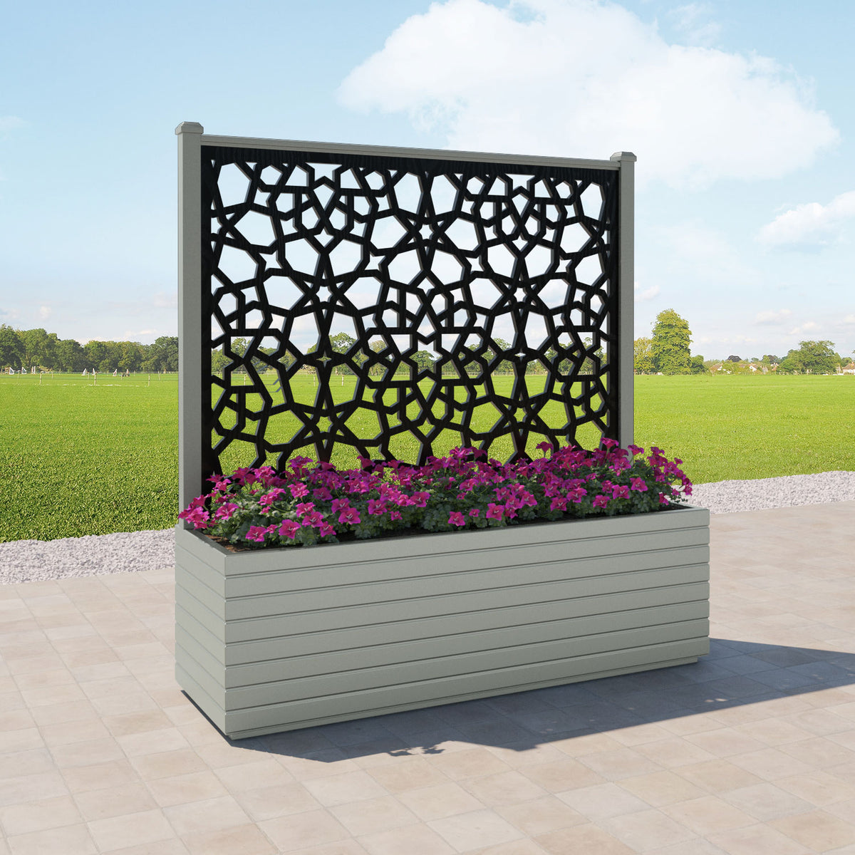 The planters are available in 6 different sizes and can be paired with any of our decorative screens that are available in 5 different colour options. The screens can be fixed at the back or in the centre of the planter. The centre option enables you to plant on both sides of the screen. They can also be ordered with a wheeled base for convenience, with lockable wheels for stability.