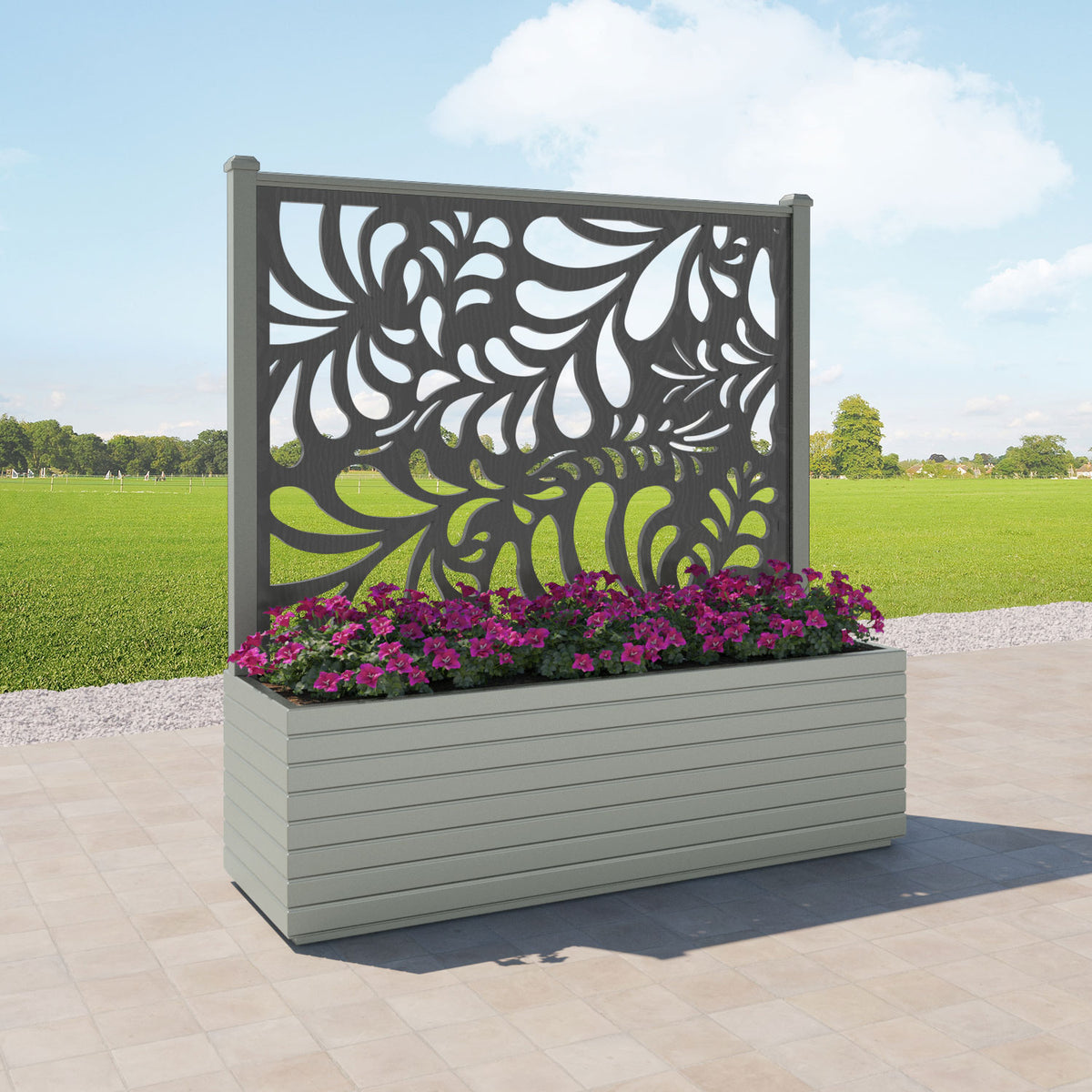 The planters are available in 6 different sizes and can be paired with any of our decorative screens that are available in 5 different colour options. The screens can be fixed at the back or in the centre of the planter. The centre option enables you to plant on both sides of the screen. They can also be ordered with a wheeled base for convenience, with lockable wheels for stability.