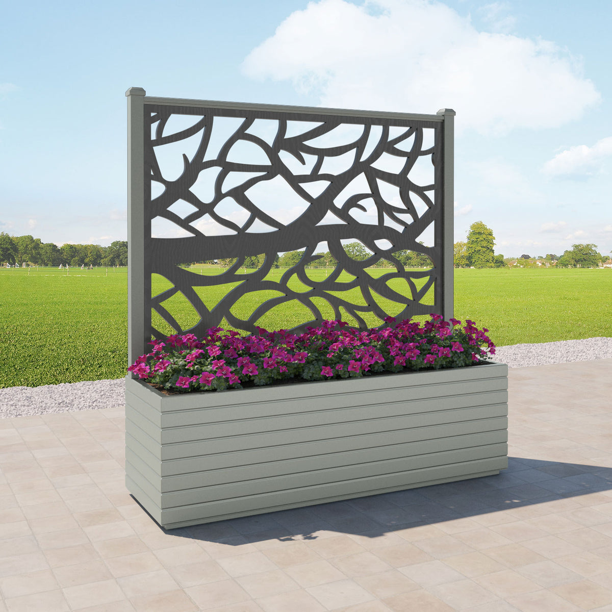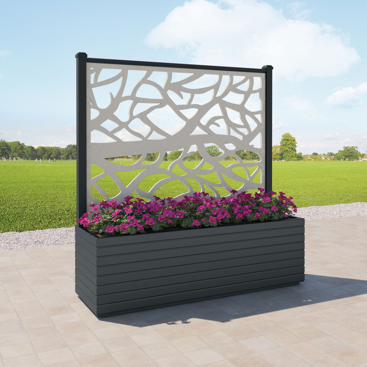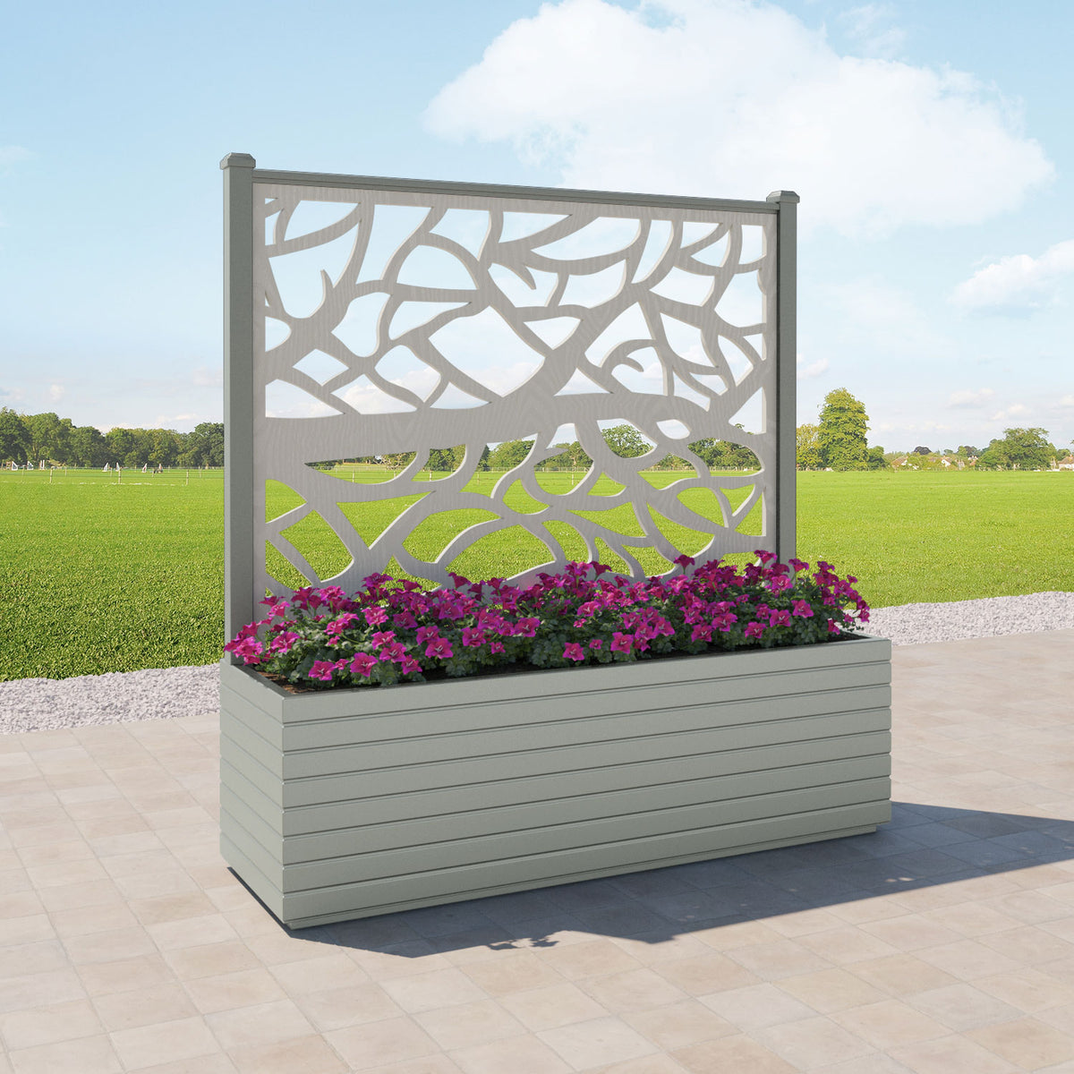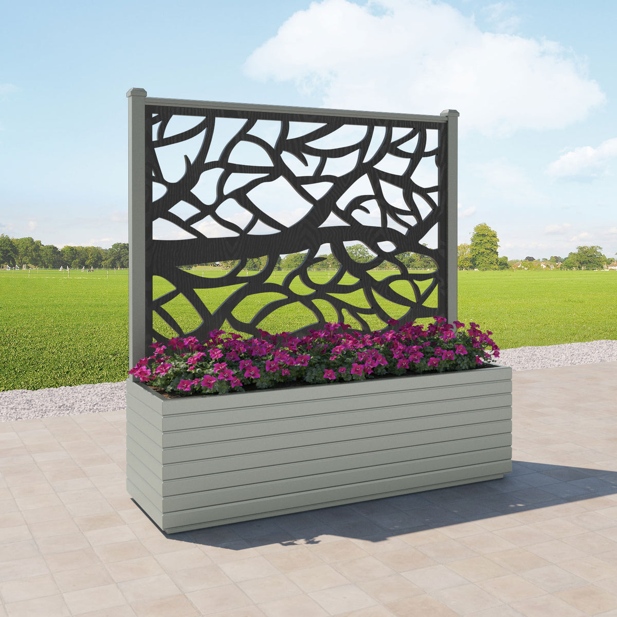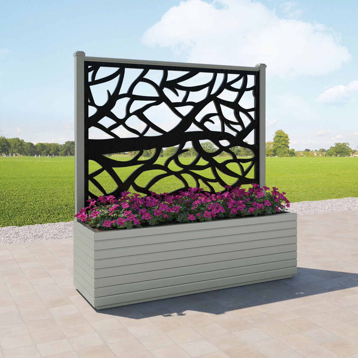 The planters are available in 6 different sizes and can be paired with any of our decorative screens that are available in 5 different colour options. The screens can be fixed at the back or in the centre of the planter. The centre option enables you to plant on both sides of the screen. They can also be ordered with a wheeled base for convenience, with lockable wheels for stability.