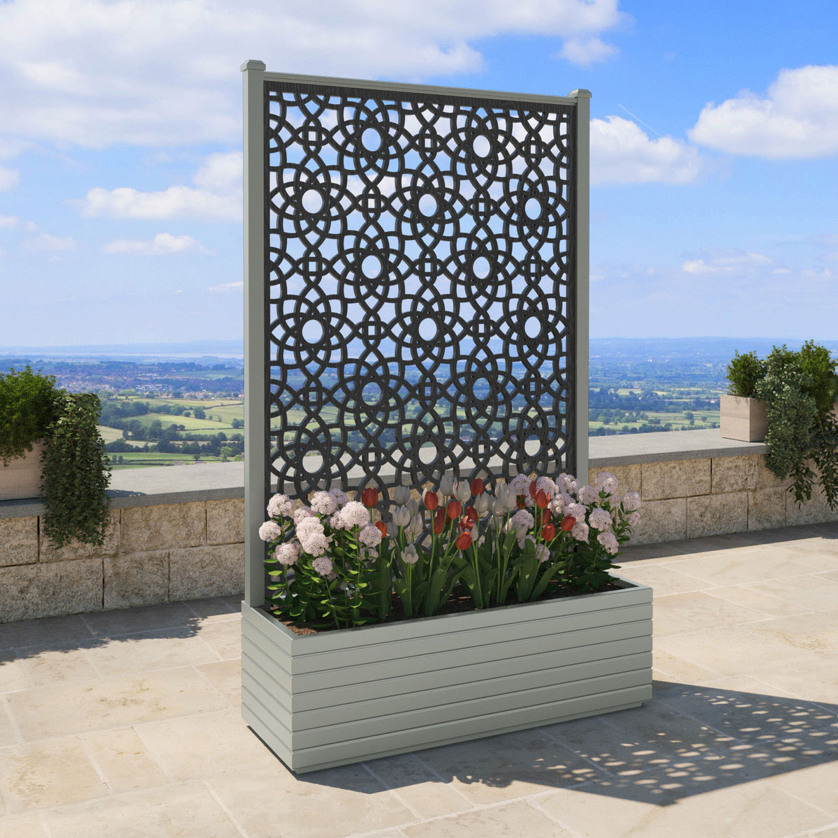 The planters are available in 6 different sizes and can be paired with any of our decorative screens that are available in 5 different colour options. The screens can be fixed at the back or in the centre of the planter. The centre option enables you to plant on both sides of the screen. They can also be ordered with a wheeled base for convenience, with lockable wheels for stability.