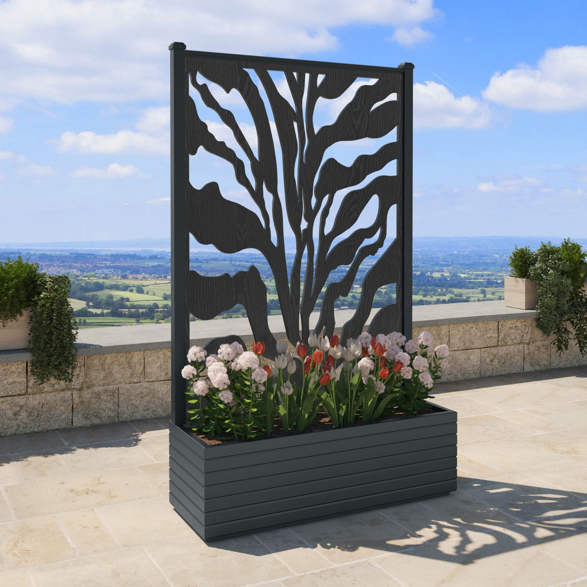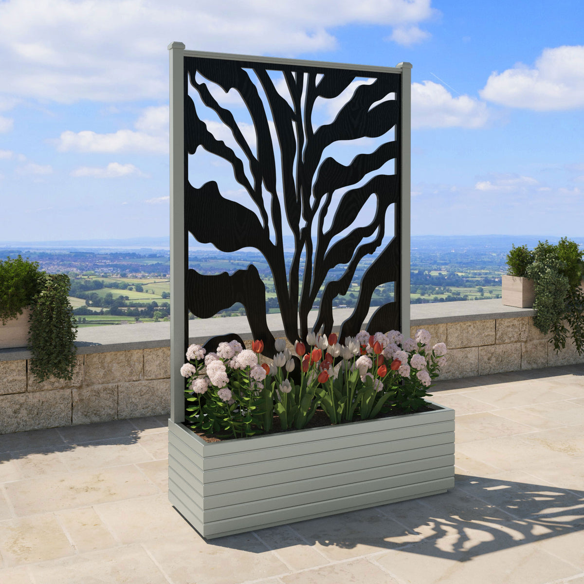 The planters are available in 6 different sizes and can be paired with any of our decorative screens that are available in 5 different colour options. The screens can be fixed at the back or in the centre of the planter. The centre option enables you to plant on both sides of the screen. They can also be ordered with a wheeled base for convenience, with lockable wheels for stability.