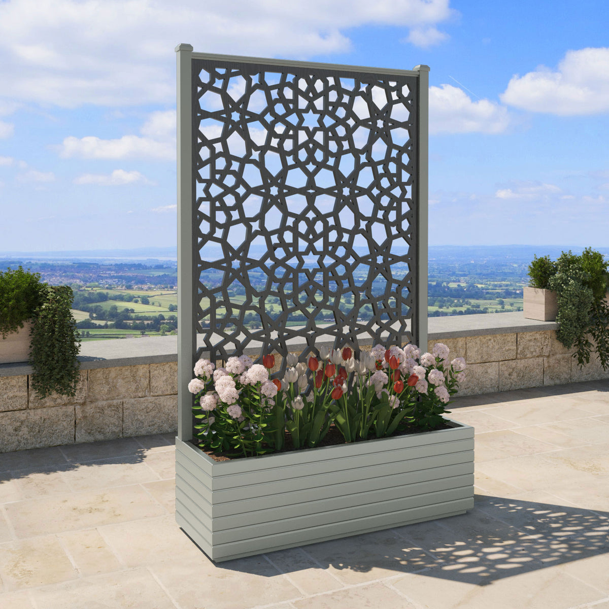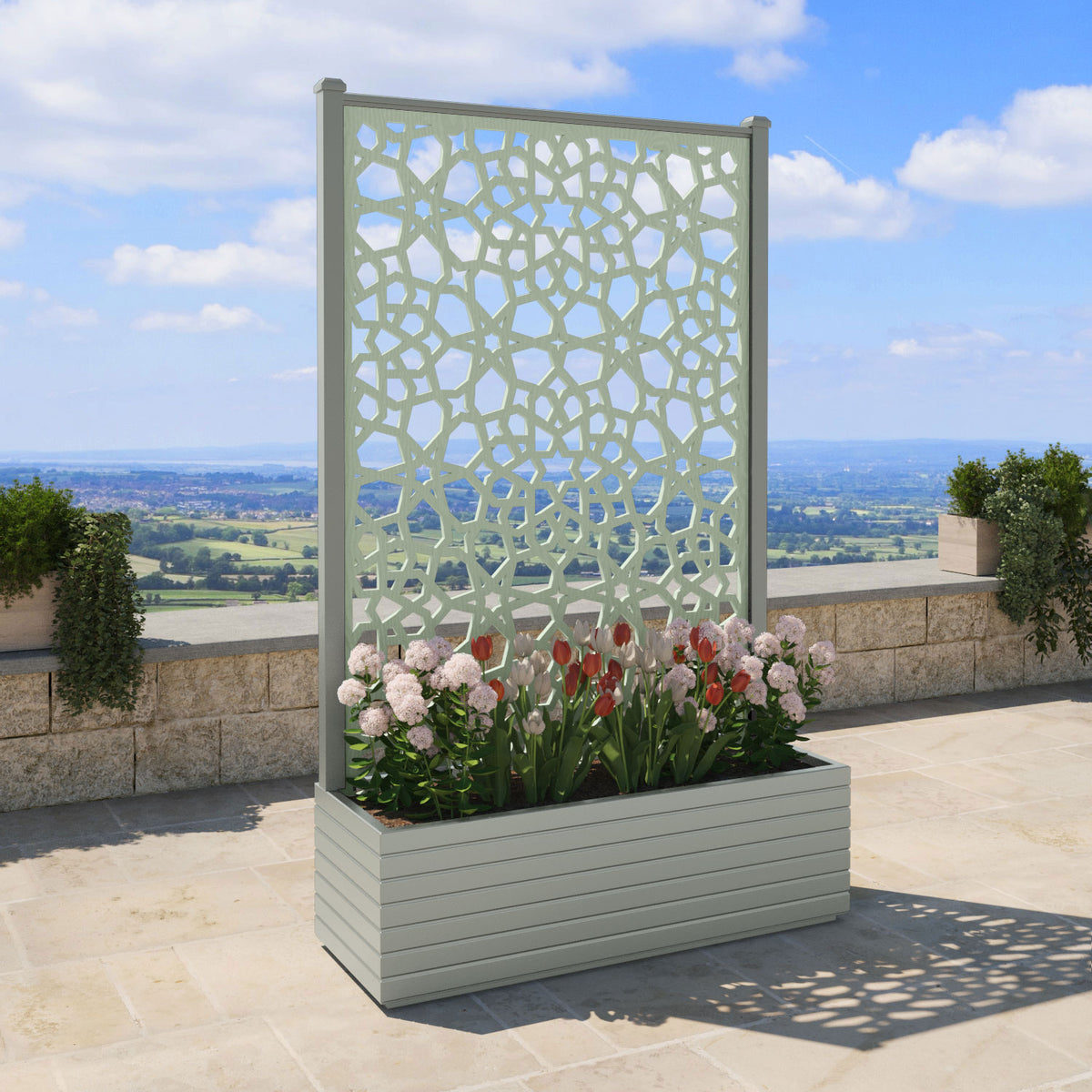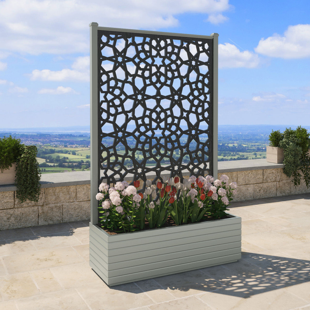 The planters are available in 6 different sizes and can be paired with any of our decorative screens that are available in 5 different colour options. The screens can be fixed at the back or in the centre of the planter. The centre option enables you to plant on both sides of the screen. They can also be ordered with a wheeled base for convenience, with lockable wheels for stability.